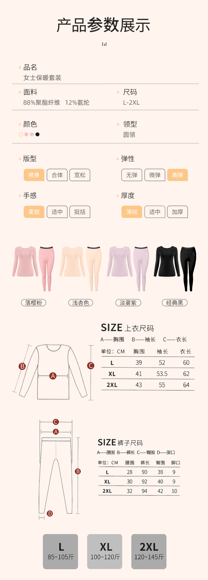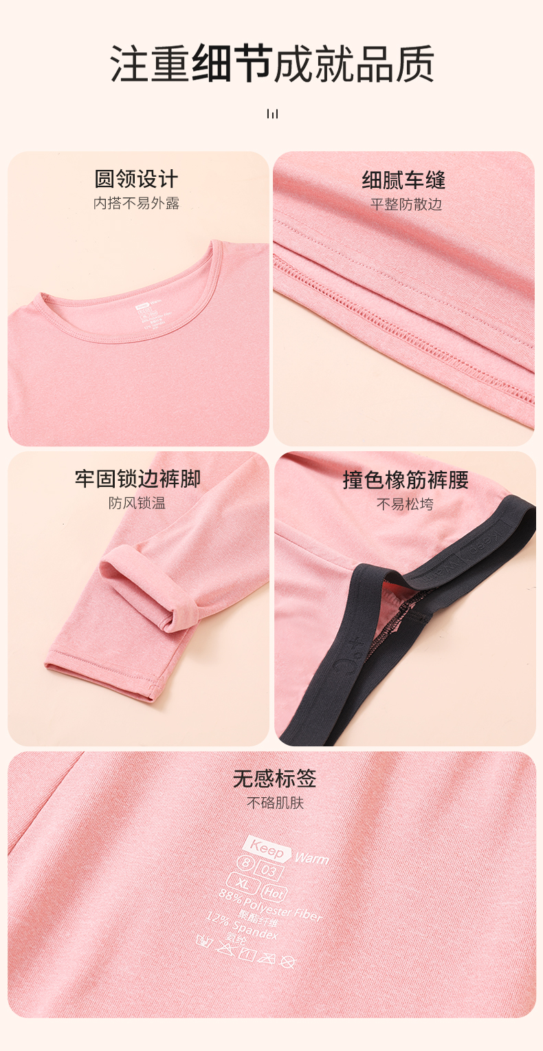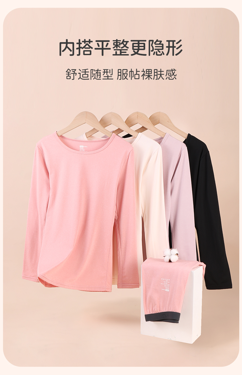 雅黛丽保暖内衣无痕亲肤柔软高弹长袖长裤纯色打底衣大码套装秋冬