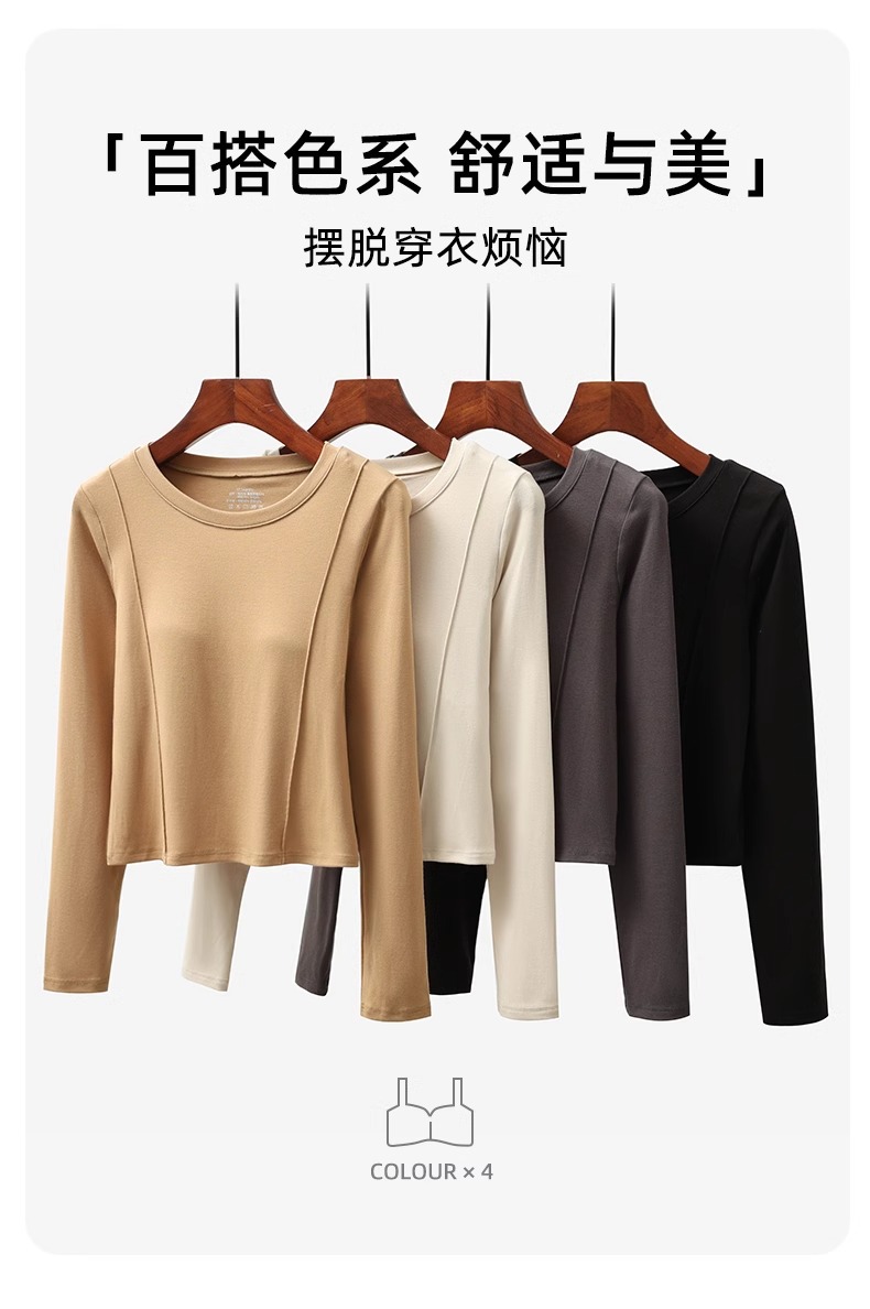 【超暖❗️文胸&打底2合1上衣】5A抗jun+腈纶发热纤维,自带胸垫秋冬T恤新款保暖内衣高级感打底衫修身型内搭外穿长袖女