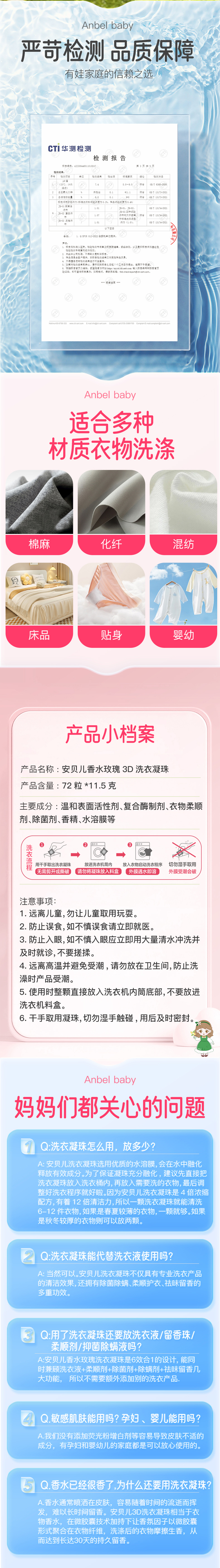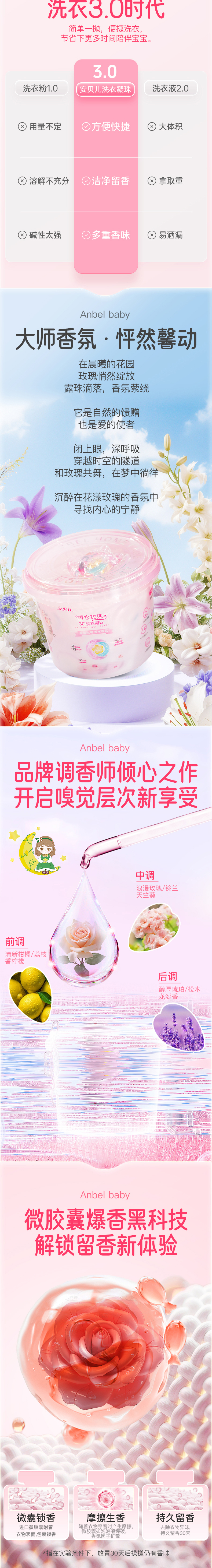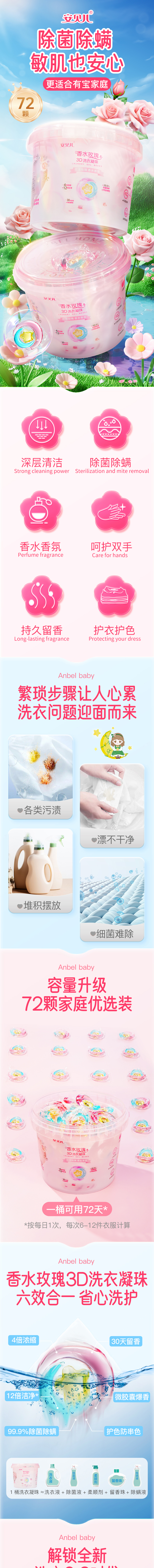 安贝儿香水玫瑰3D洗衣凝珠828克(72粒*11.5克)