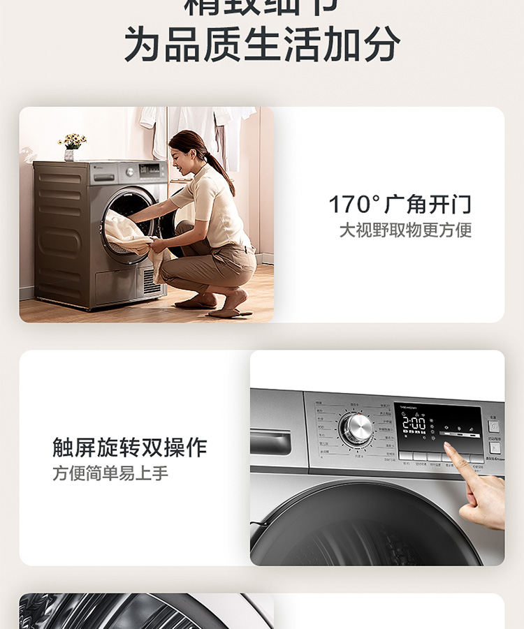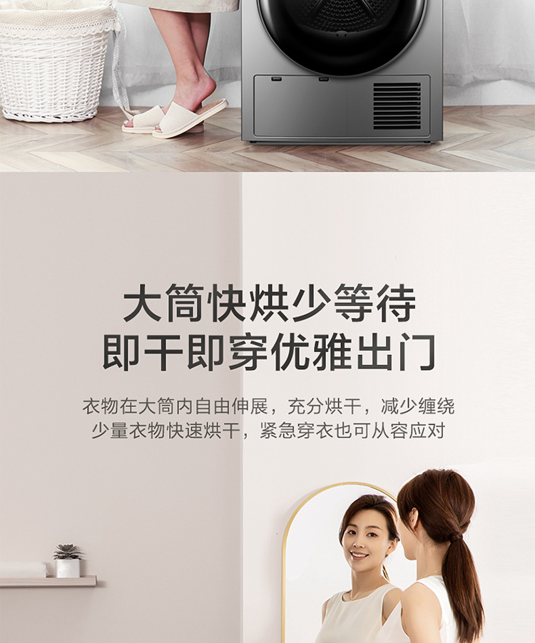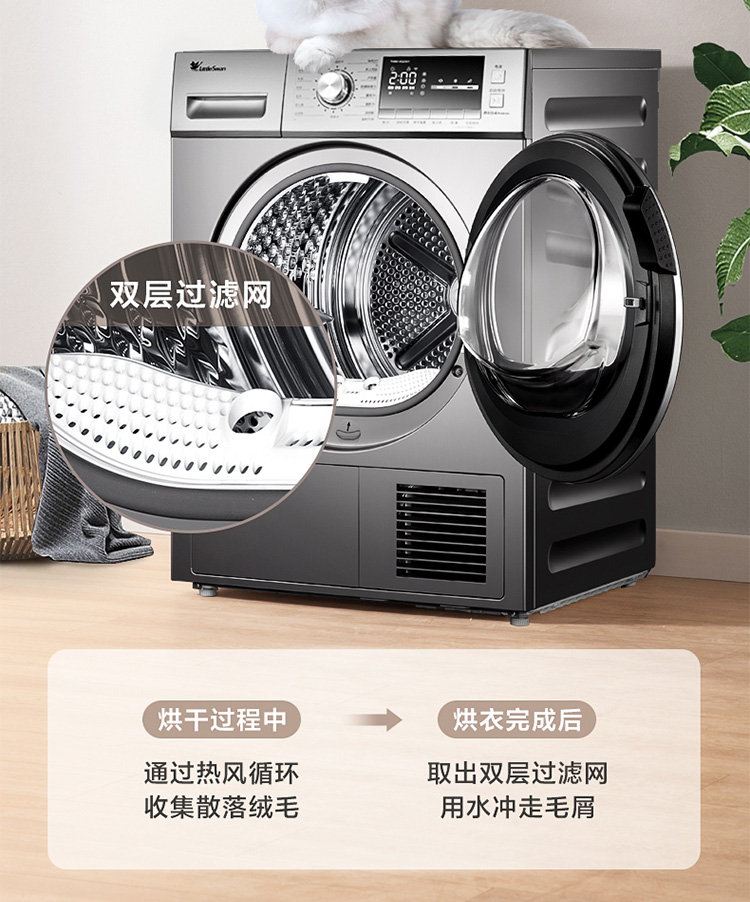 小天鹅 LittleSwan TH90-H02WY烘干机家用 干衣机 热泵式紫外线除菌 衣干即停 快烘20分钟 9公斤 智能家电