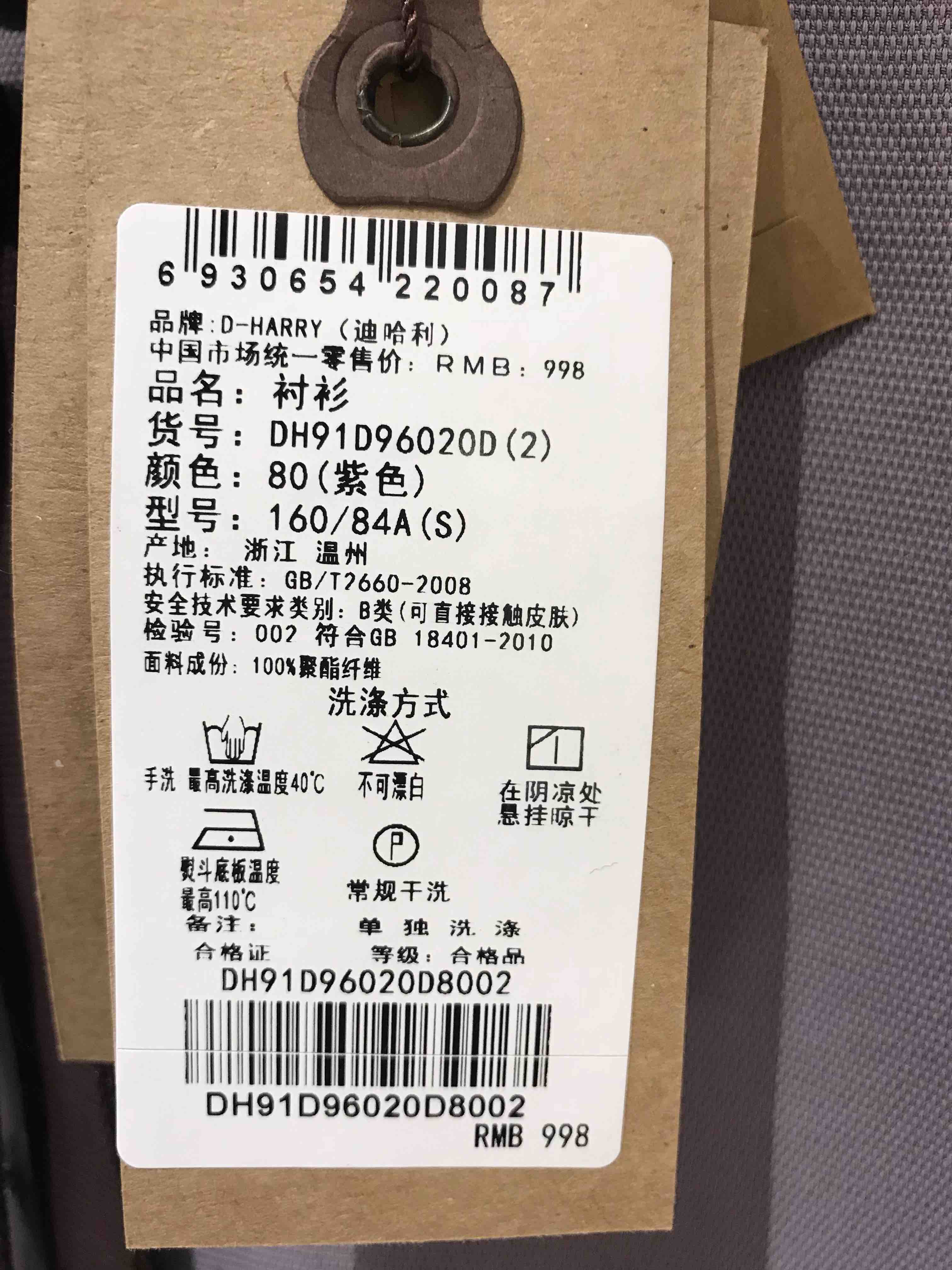 泰富百货四楼女装D-HARRY迪哈利2018春款衬衫DH91D96020D吊牌价998【待调整】