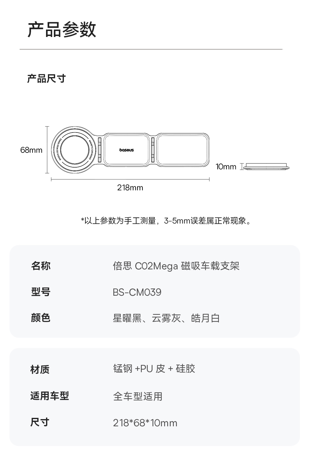 倍思 C02 Mega 磁吸车载支架 粘贴版
