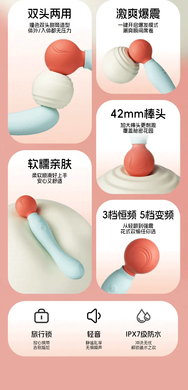 【内外可玩】杰士邦Fancy系列双头甜筒AV震动棒