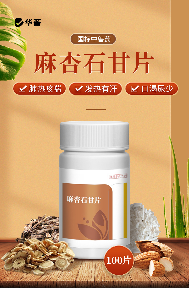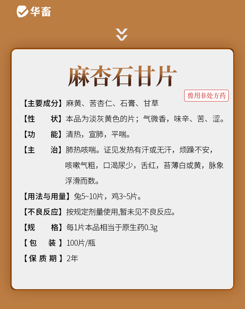 【积分兑换】华畜兽用0.3g麻杏石甘片猪用牛羊鸡鸭鹅药肺炎咳喘清肺止咳呼吸道