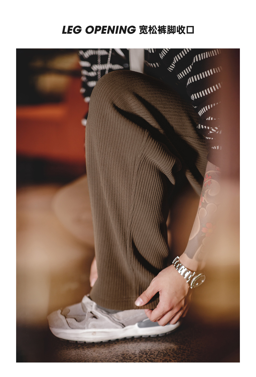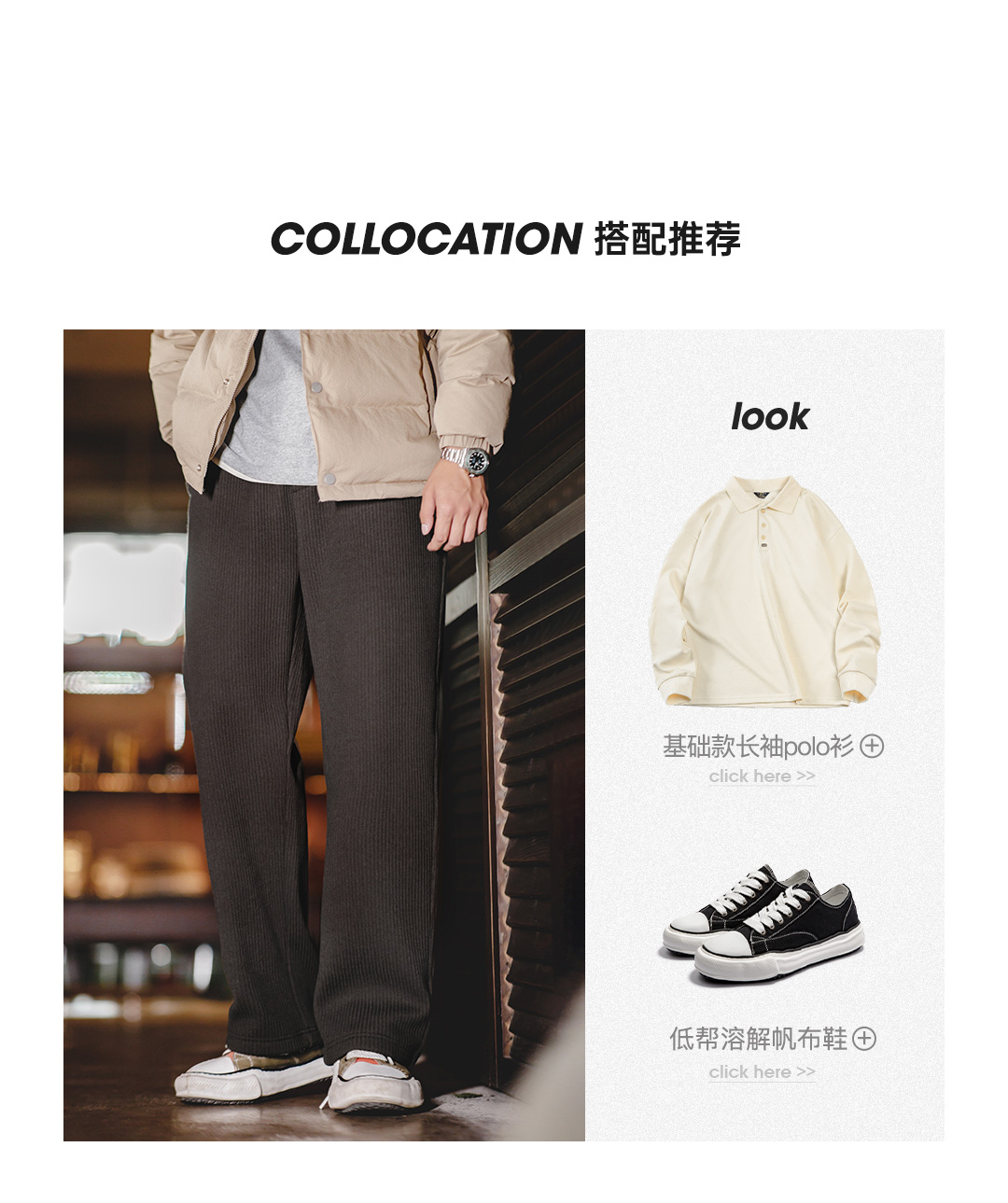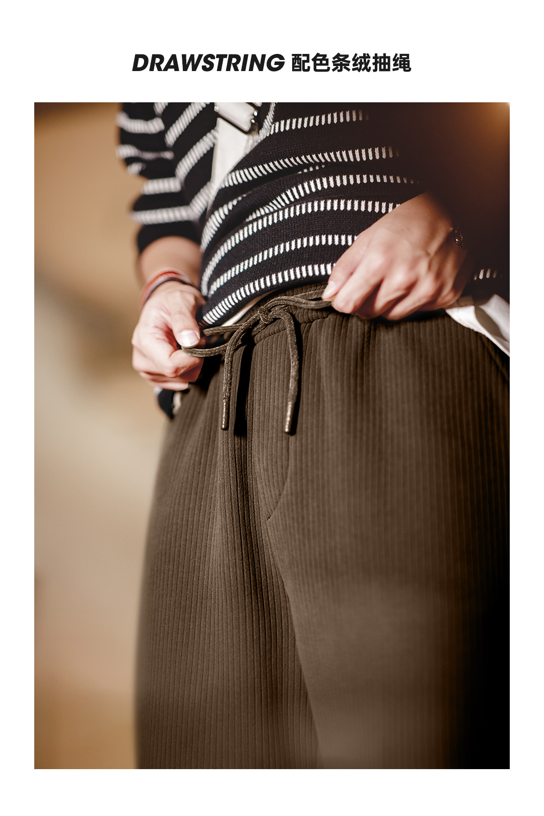 马登工装 美式复古条绒垂感阔腿裤子宽松加绒直筒拖地休闲长裤男