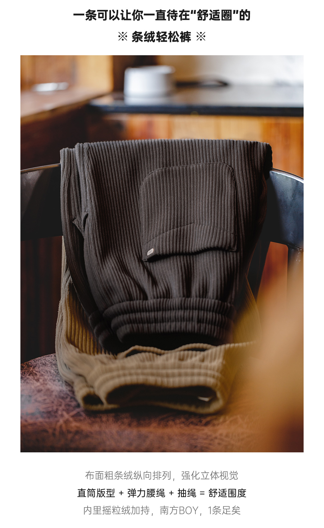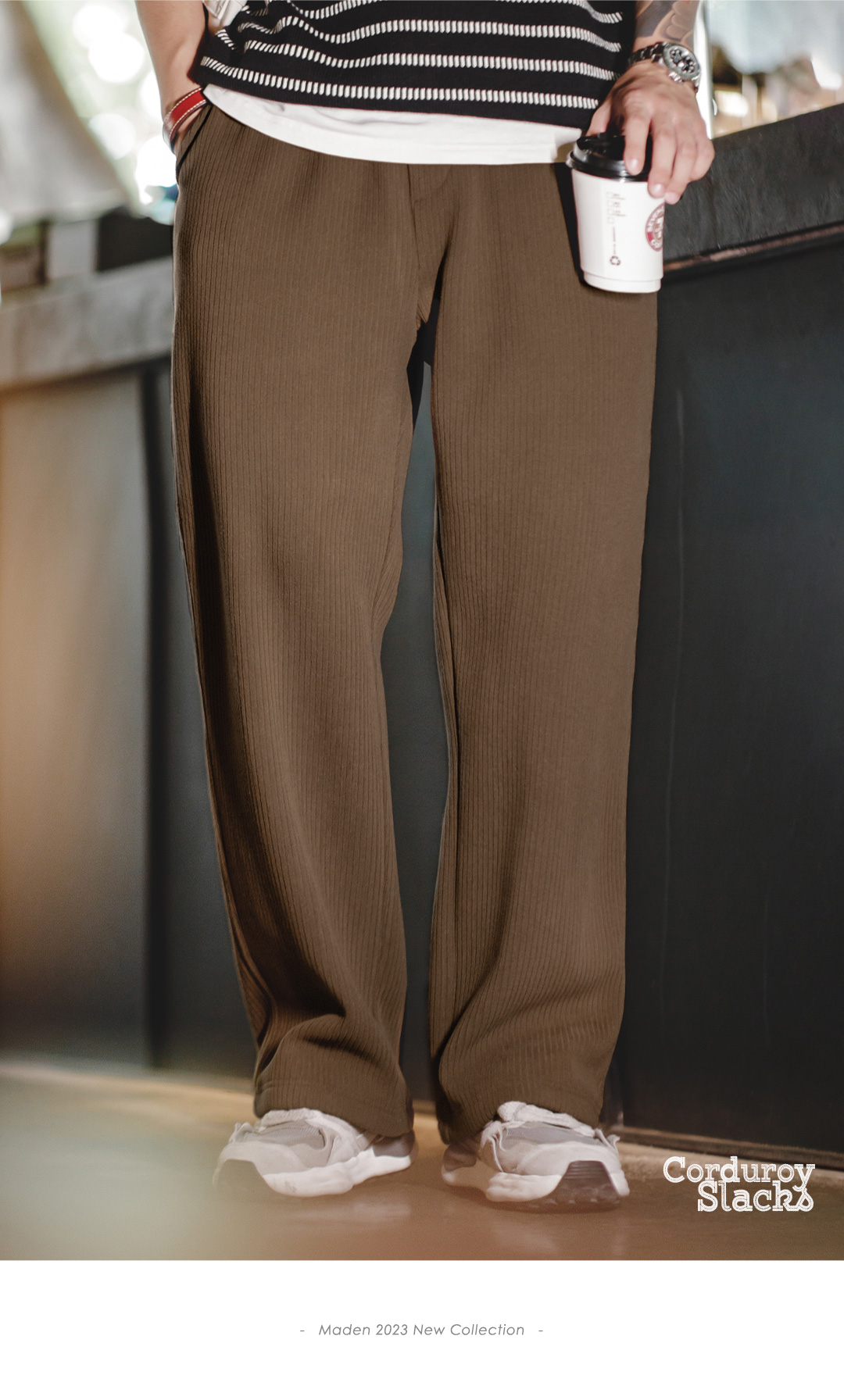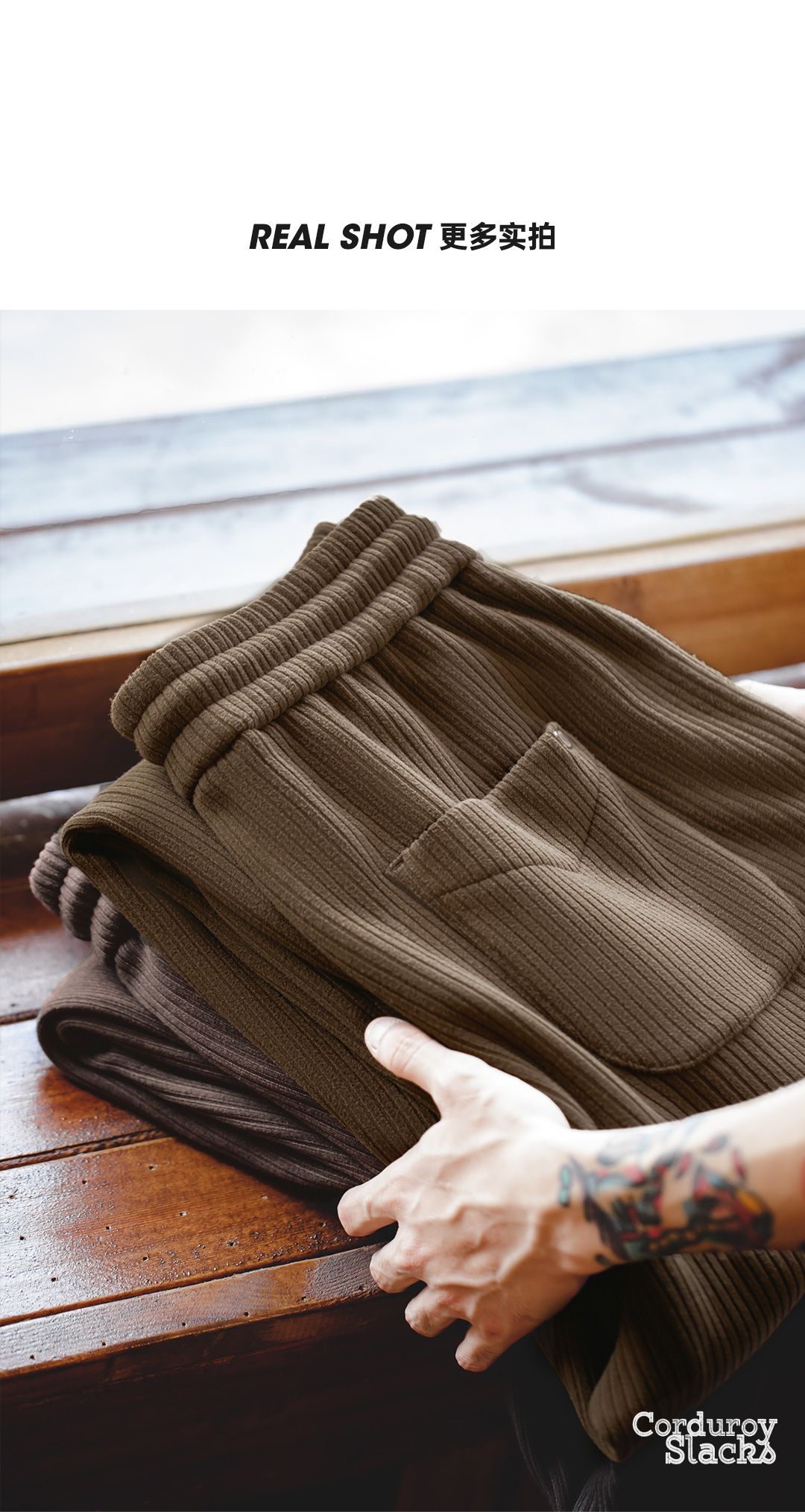 马登工装 美式复古条绒垂感阔腿裤子宽松加绒直筒拖地休闲长裤男
