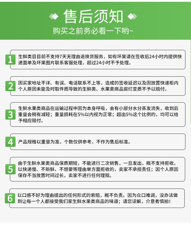 1、猕猴桃发货为7-8分熟的果子,若收到猕猴未熟透,请将猕猴桃催熟后再食用,口感风味更佳!