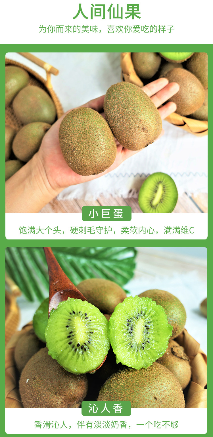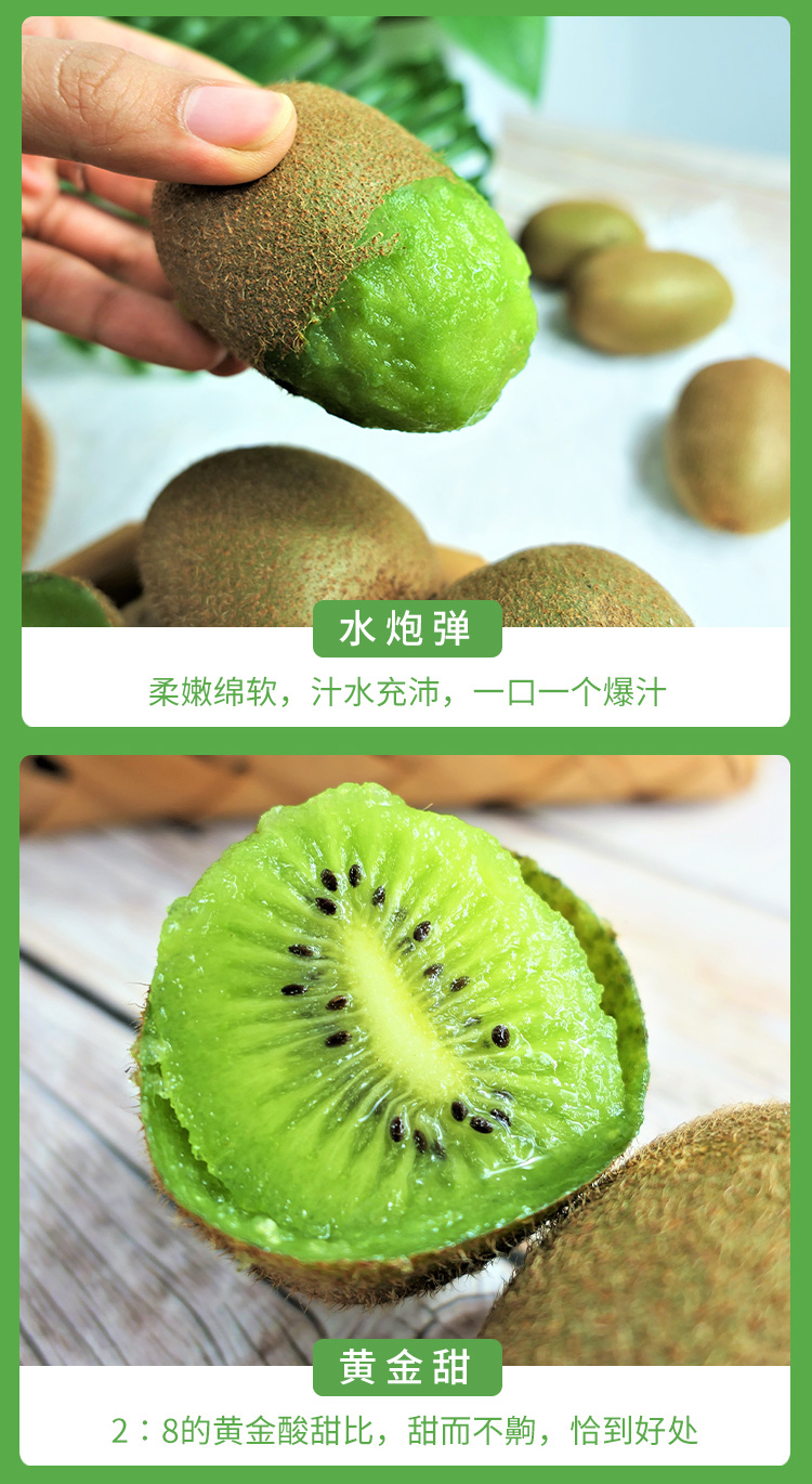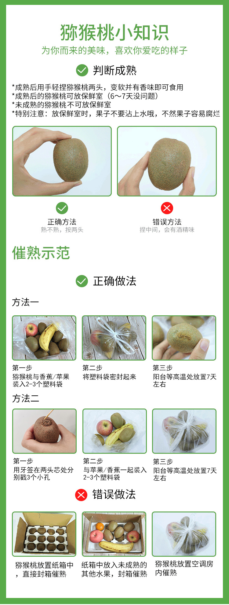 2、判断成熟时注意是捏猕猴桃两头哦,催熟及判断成熟技巧可参考详情图。