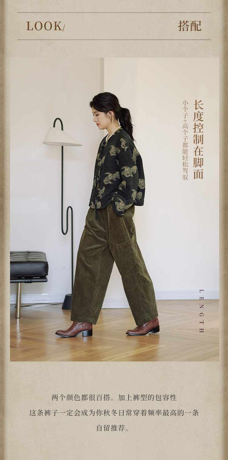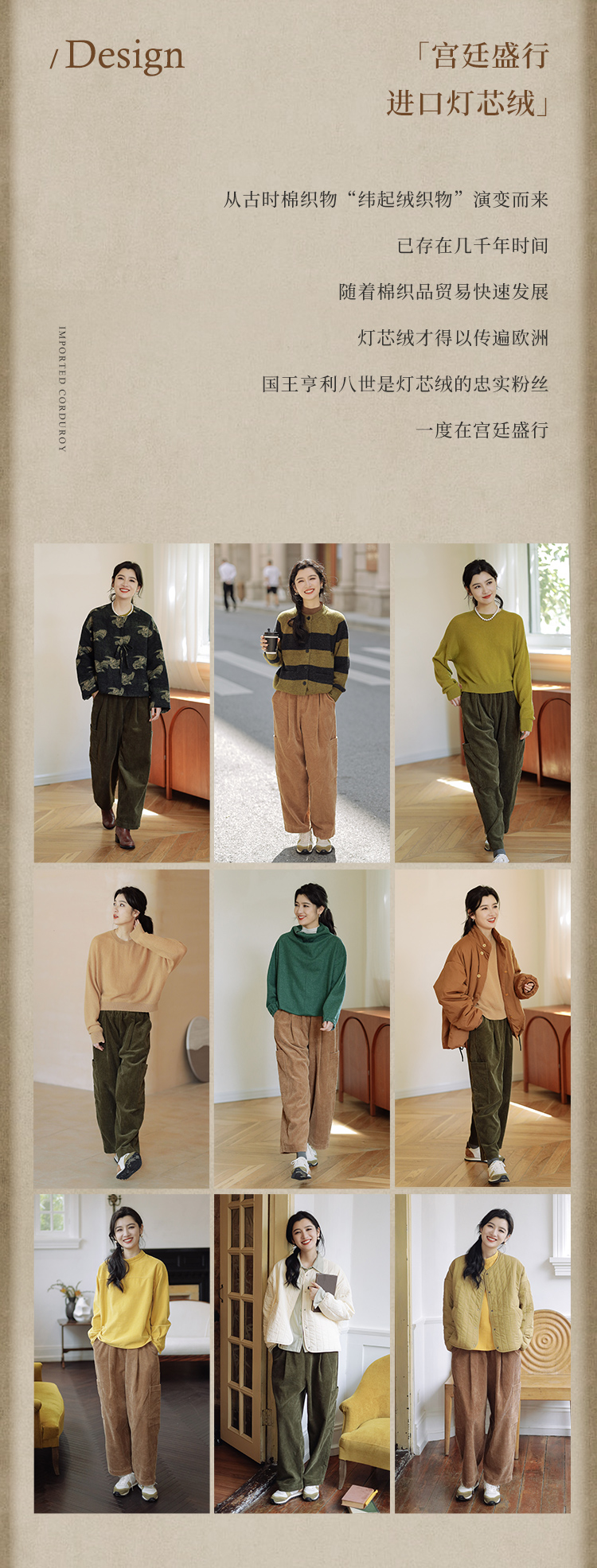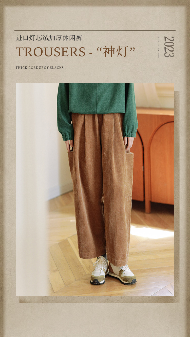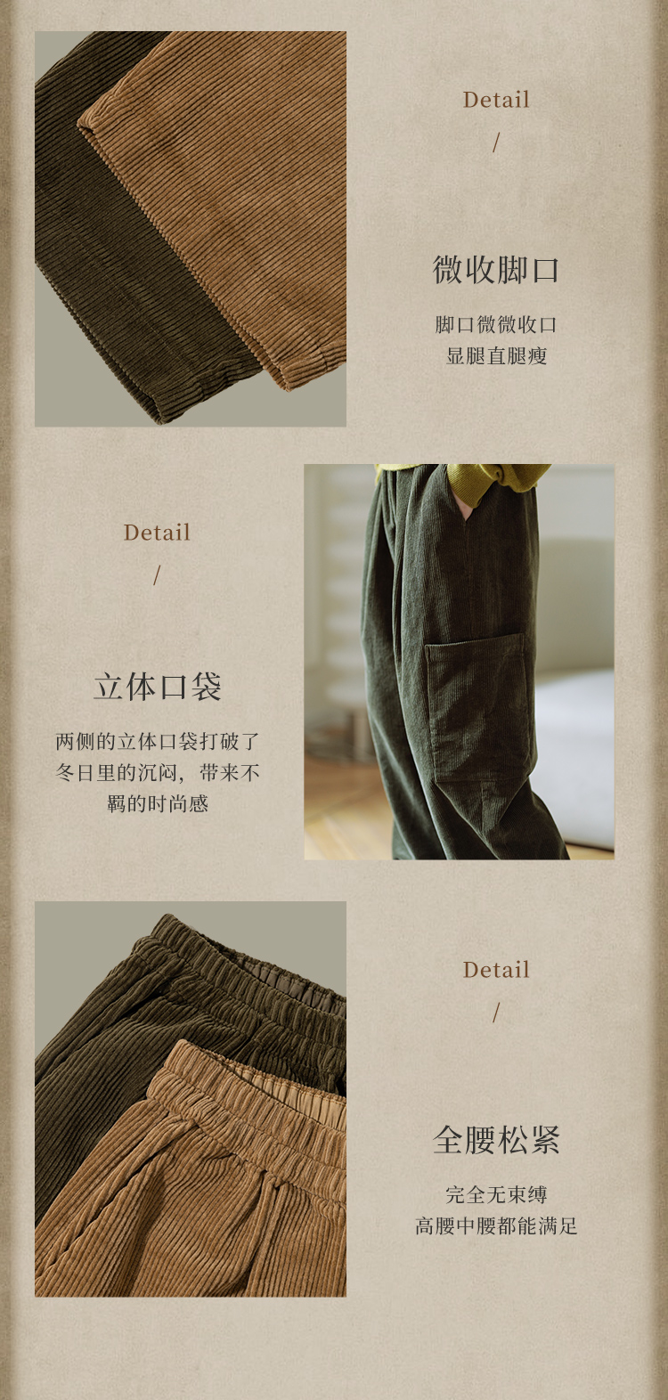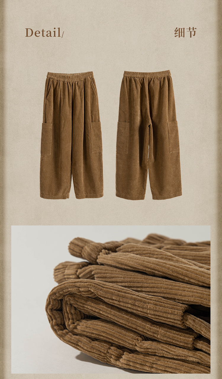 绽放748朵/咖啡色进口灯芯绒休闲裤新款德隆生态棉阔腿裤