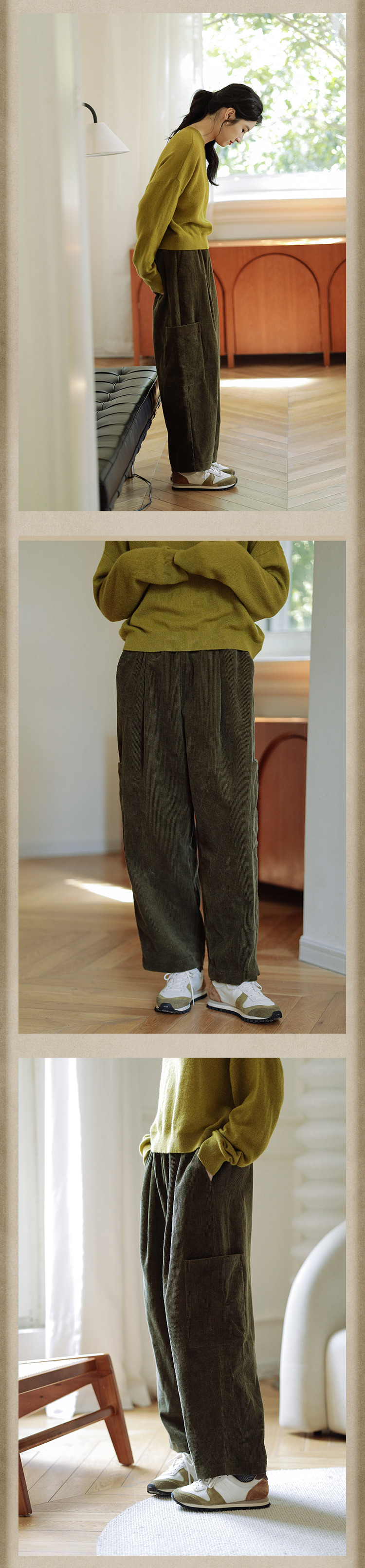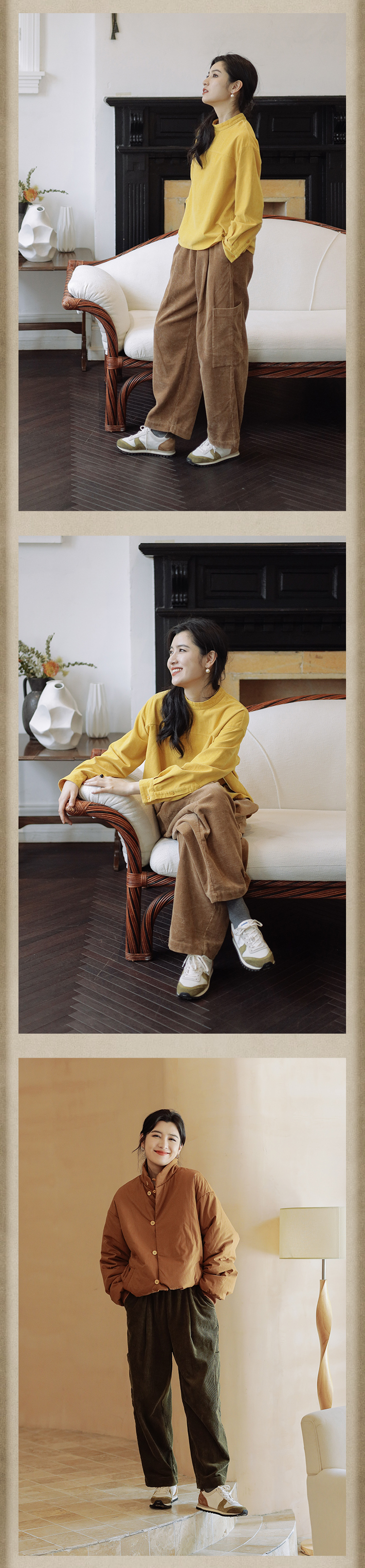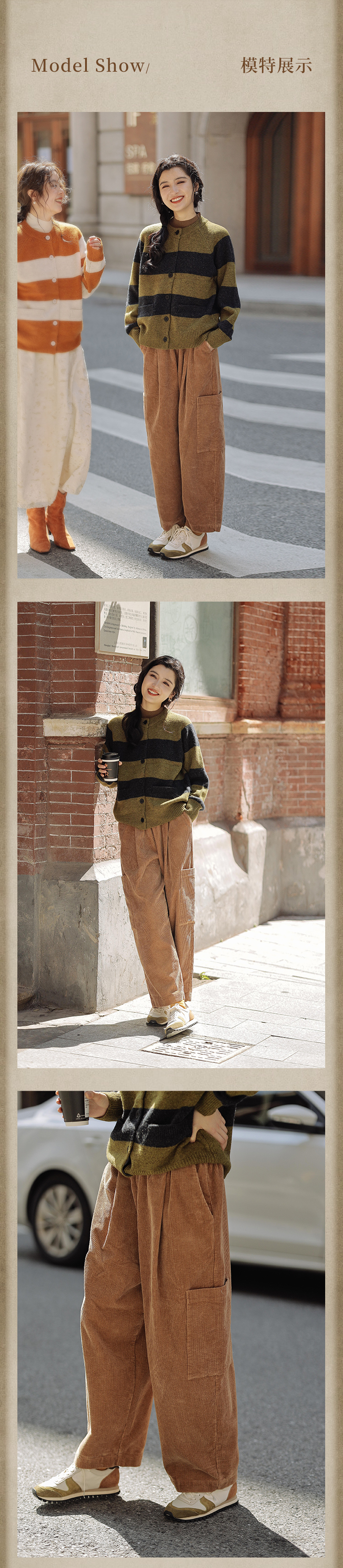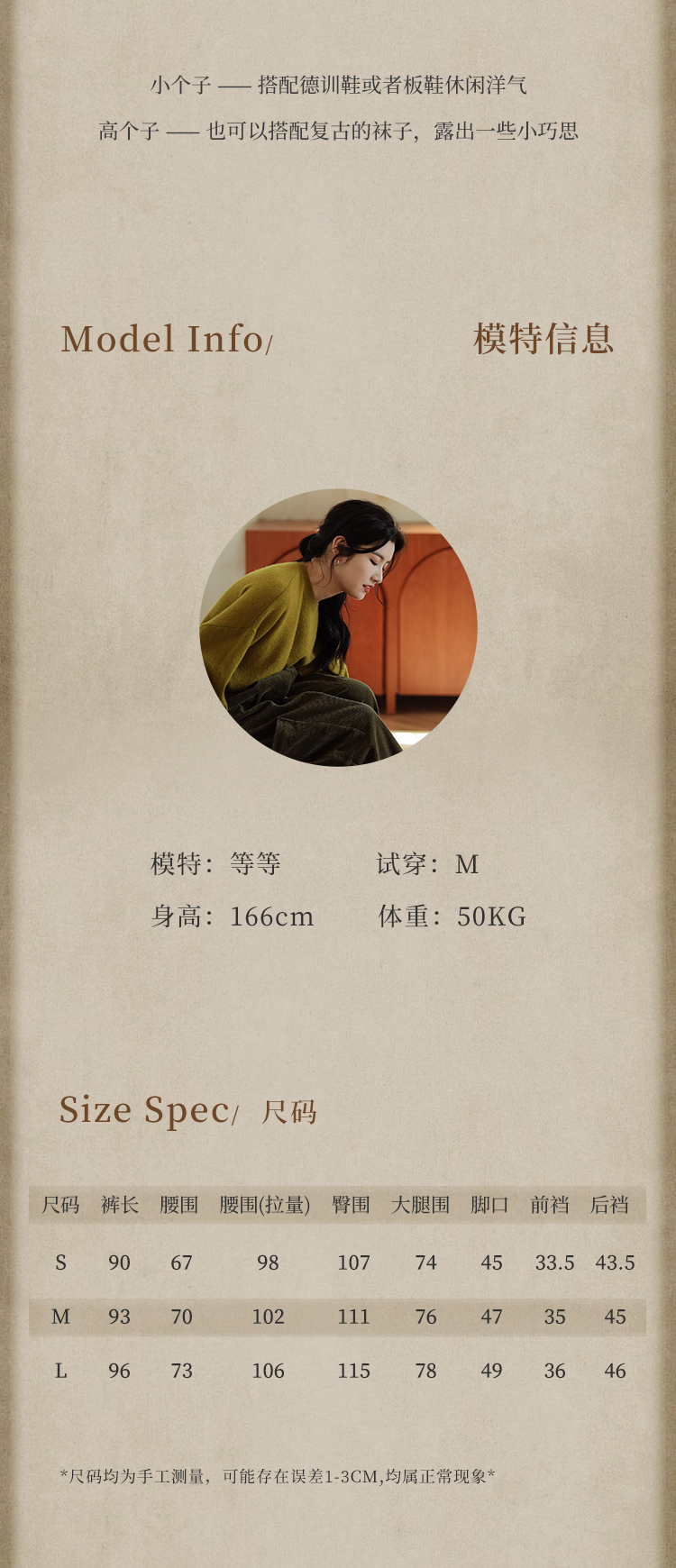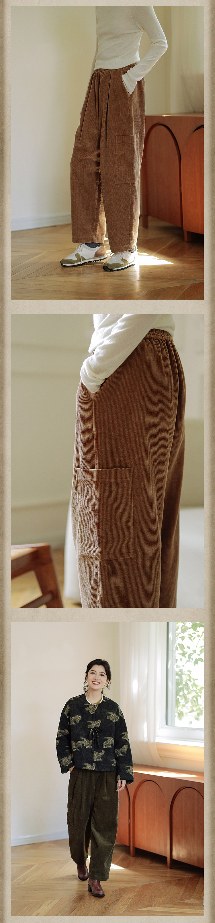 绽放748朵/咖啡色进口灯芯绒休闲裤新款德隆生态棉阔腿裤