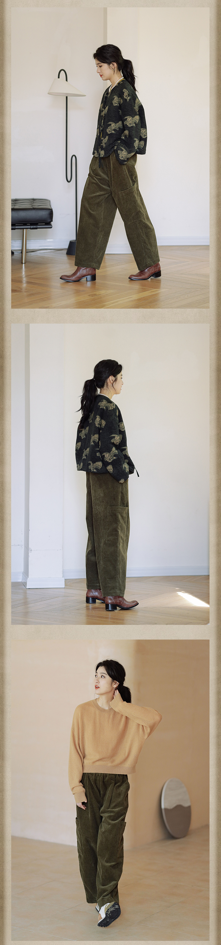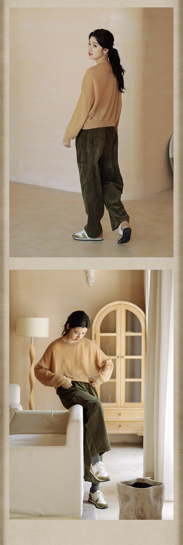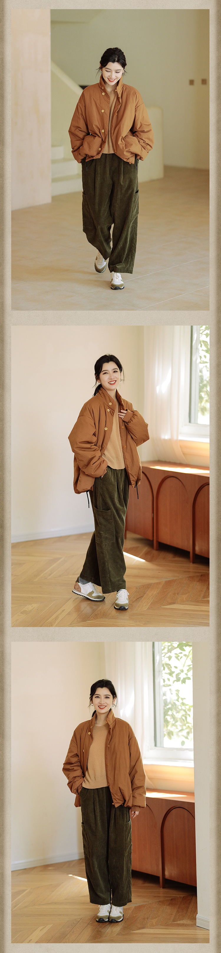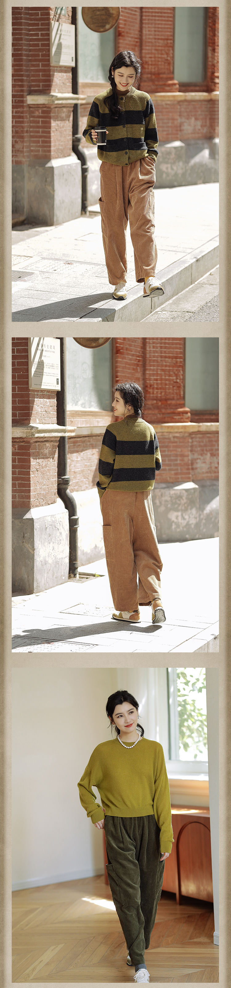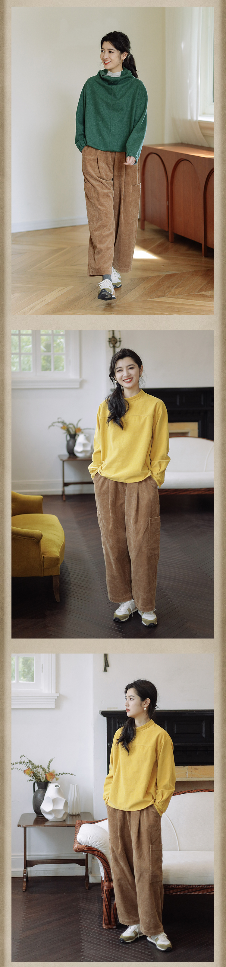 绽放748朵/咖啡色进口灯芯绒休闲裤新款德隆生态棉阔腿裤