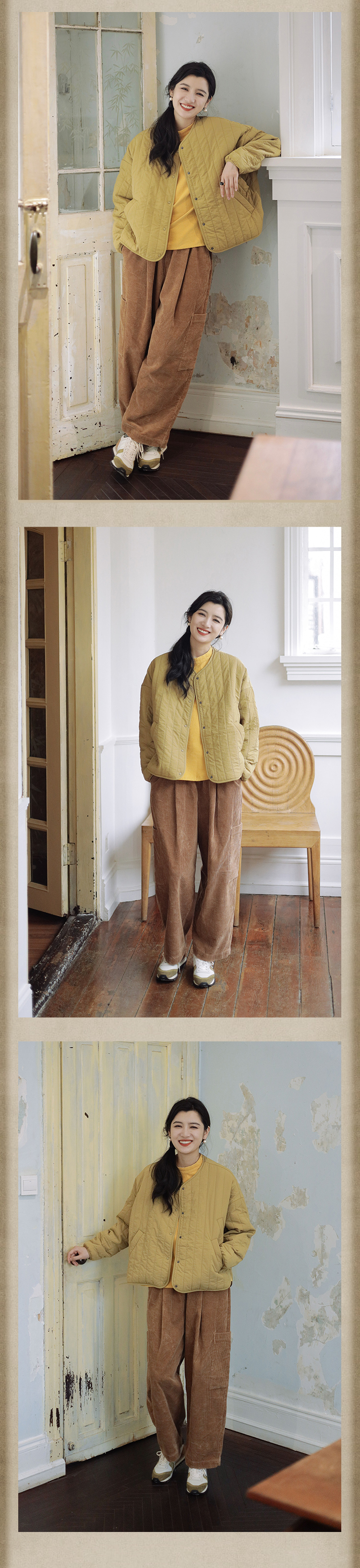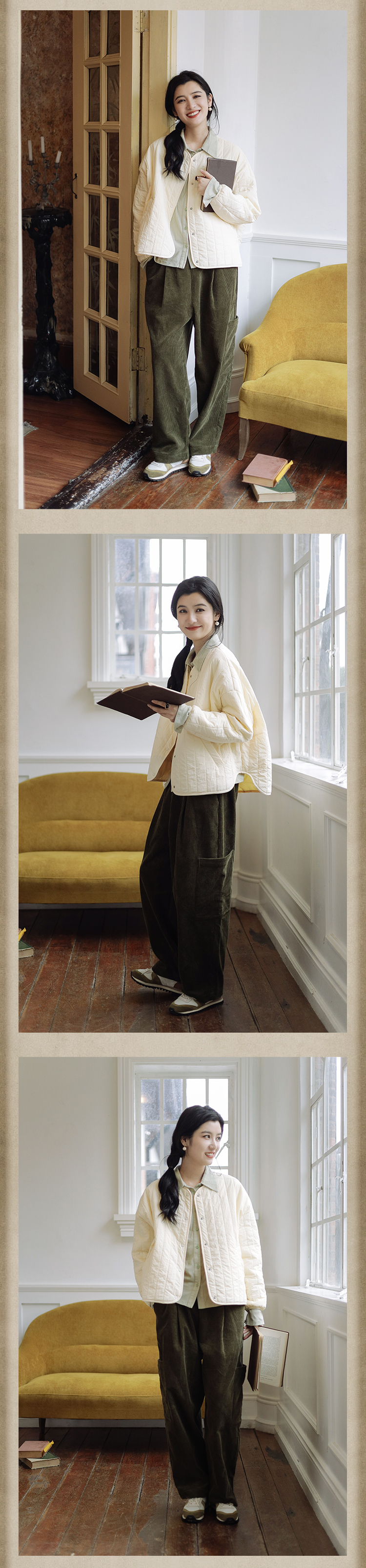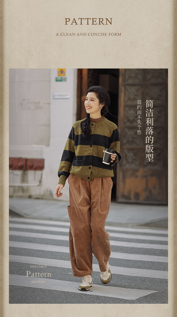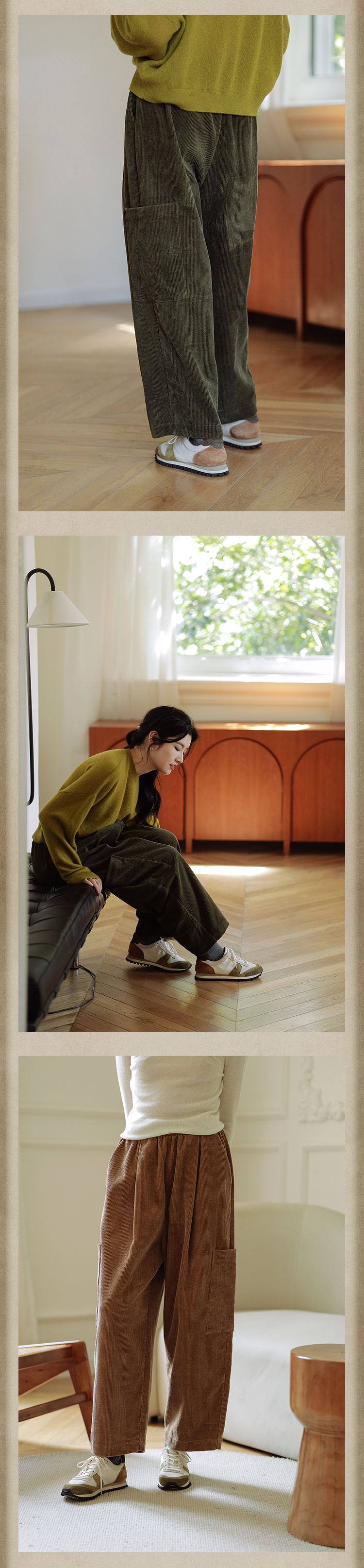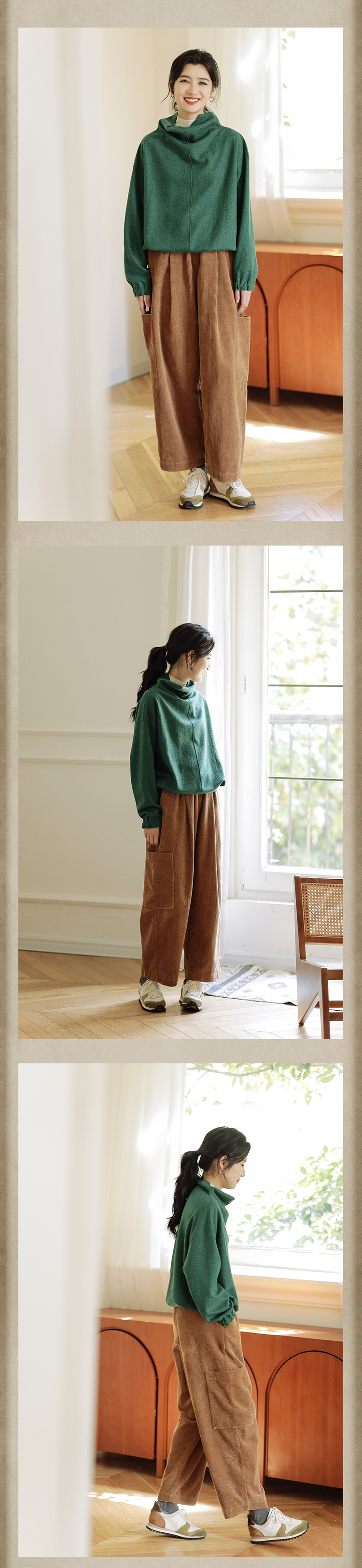 绽放748朵/咖啡色进口灯芯绒休闲裤新款德隆生态棉阔腿裤