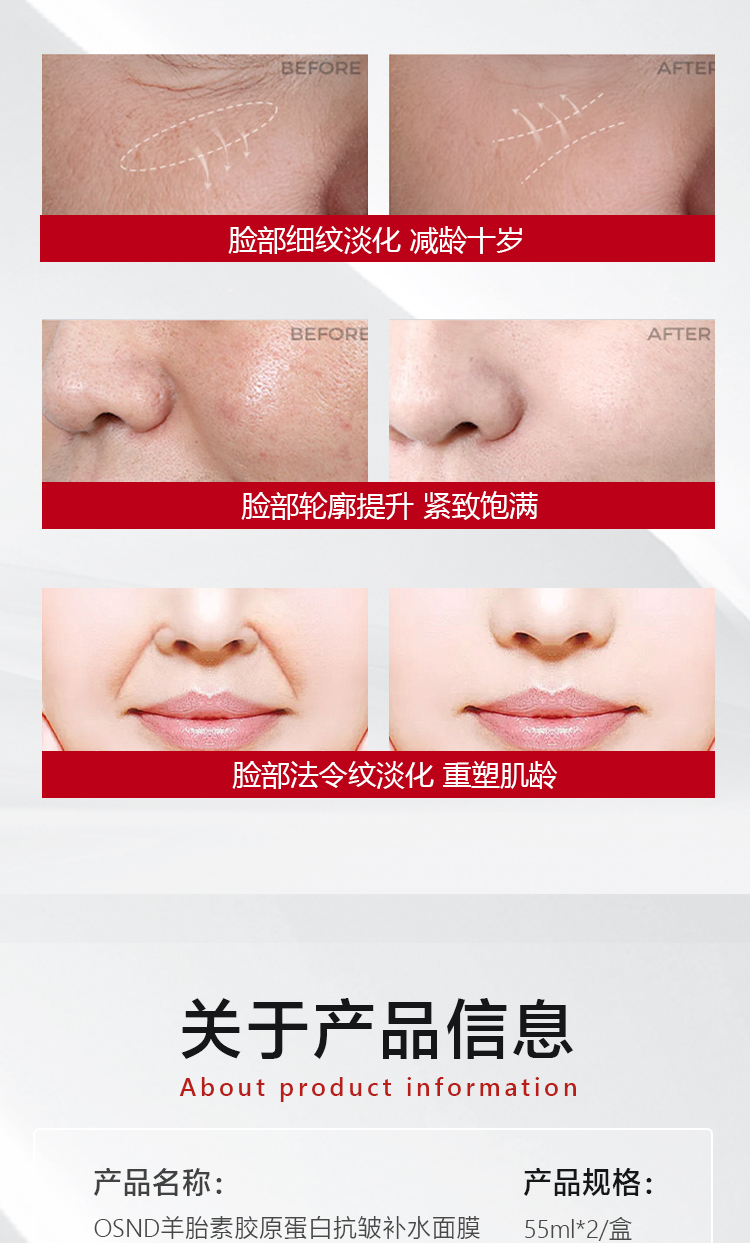 【超值5盒装】加拿大原装进口 OSND 羊胎素胶原蛋白抗皱补水 涂抹式面膜 55ml*2支*5盒