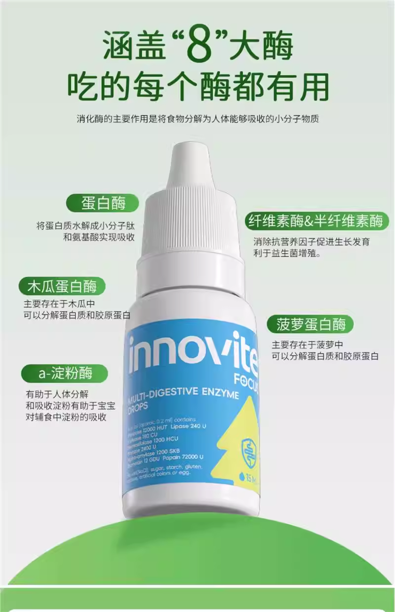 【源码新包装】英珞维消化酶儿童复合消化酶宝宝非益生菌进口食品级复合蛋白酶
