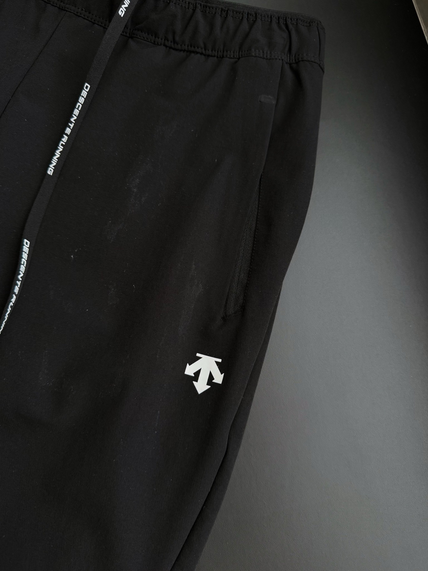 加宽弹力松紧腰头,双压线+内里亲肤材质,保持贴合的平整度,无勒痕、不卷边,内里配抽绳,根据身材轻松调节;两侧斜插侧拉链口袋实用性在线。内里细节针脚细腻,没有任何多余的线头。口袋下方和后腿处都有品牌logo的胶印,不易开裂。箭头RUNNING 360直筒梭织女士运动裤