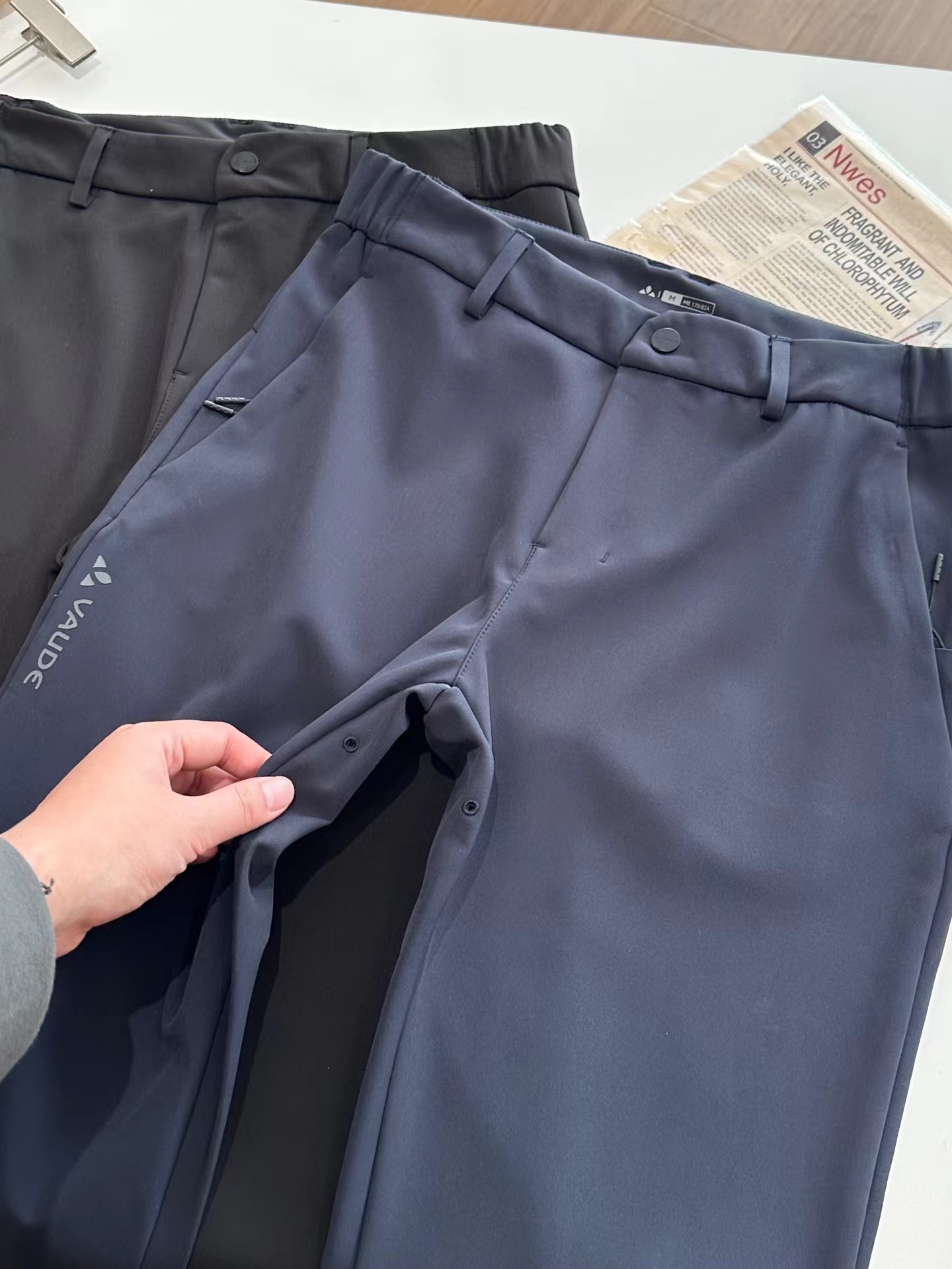 轻商务户外运动软壳加绒裤 妥妥滴性能六边形战士 钻石裆部并设有透气孔,真正做到防风防水保暖弹力耐磨透气六大性能全部满足 无论是户外探索,骑行穿越,还是日常通勤,都能让你从容应对多变场景。直筒剪裁修饰腿型,既保证活动空间,又兼顾利落版型,搭配运动鞋或登山靴都协调有型,多场zui通吃,一条裤子搞定全天候!这条软壳裤的 versatility(多用性)体现在:户外场景中,防泼水、耐磨、弹力的特性,让成为徒步、骑行、露营的理想选择;都市场景里,简约利落的版型,搭配卫衣、衬衫或针织衫都室无违和感,轻松胜任通勤、休闲等多种场合。西裤式做工,加厚腰带袢设计,让腰带不易滑落;侧腰调节设计是这条裤子的“贴心彩蛋”内置橡筋,可根据腰围自由收缩,搭配腰带使用,既能精准贴合不同体型,又能保持腰部线条利落挺括。裆部有透气孔,吸汗透气,工整的包边与走线工艺,无多余线头,内里加绒虚热,触感柔软不刺激皮肤,即使长时间贴身穿着也舒适自在。冬春换季单穿不冷,北方秋冬内搭秋裤也不臃肿,完全够用。