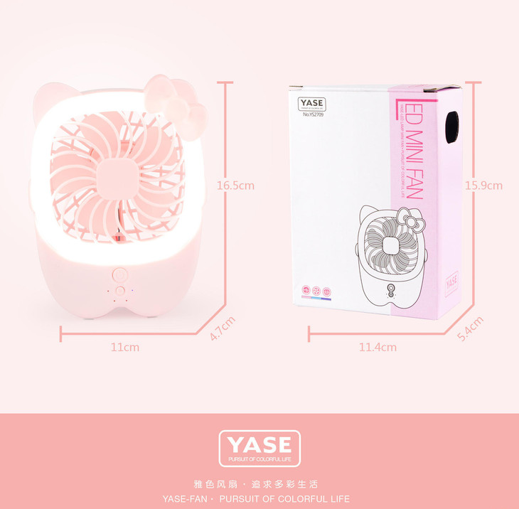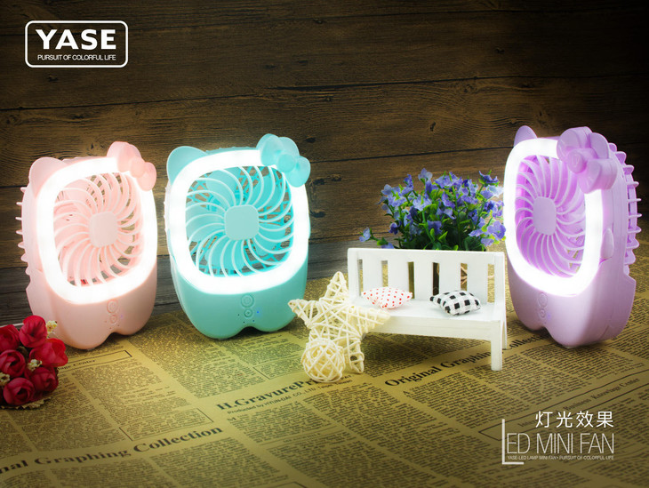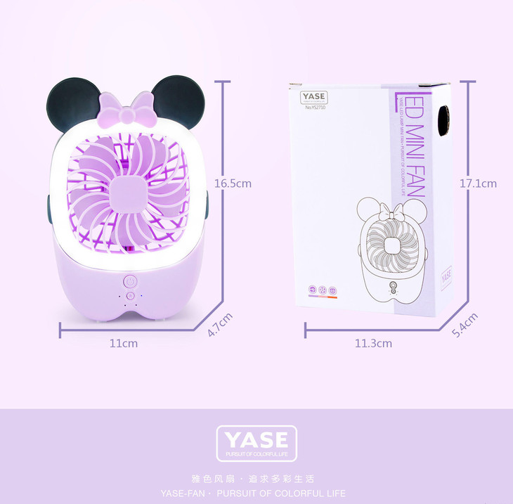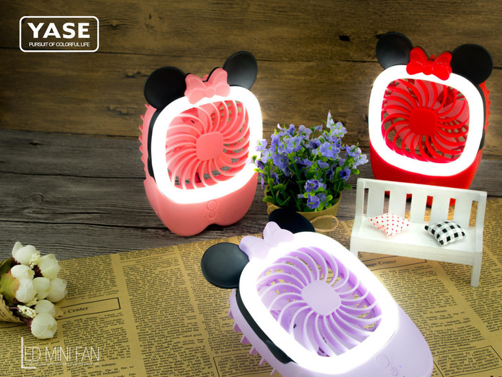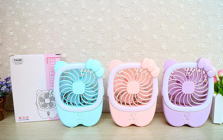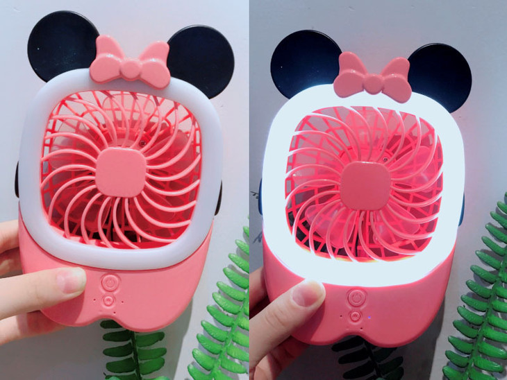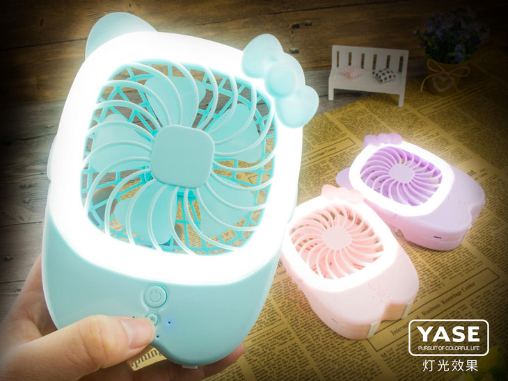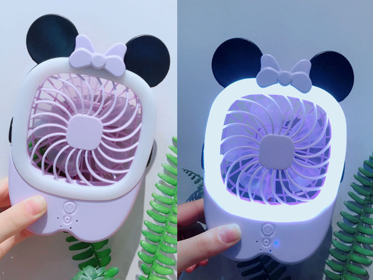 【家用电器】。卡通米奇风扇夏季新款USB风扇 hello kitty迷你风扇带灯夜光照明