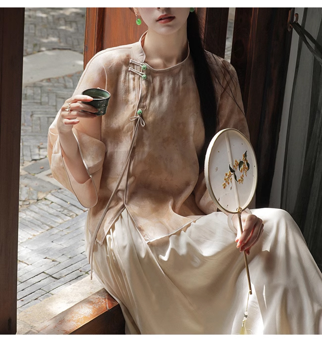 裁缝学苑AQ329新中式国风小衫纸样女装斜门襟七分袖衬衫上衣样板