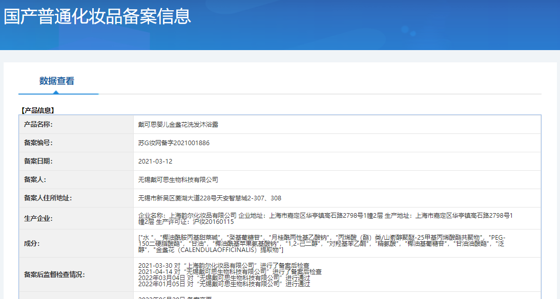 戴可思230ml婴儿金盏花洗发沐浴露2合1