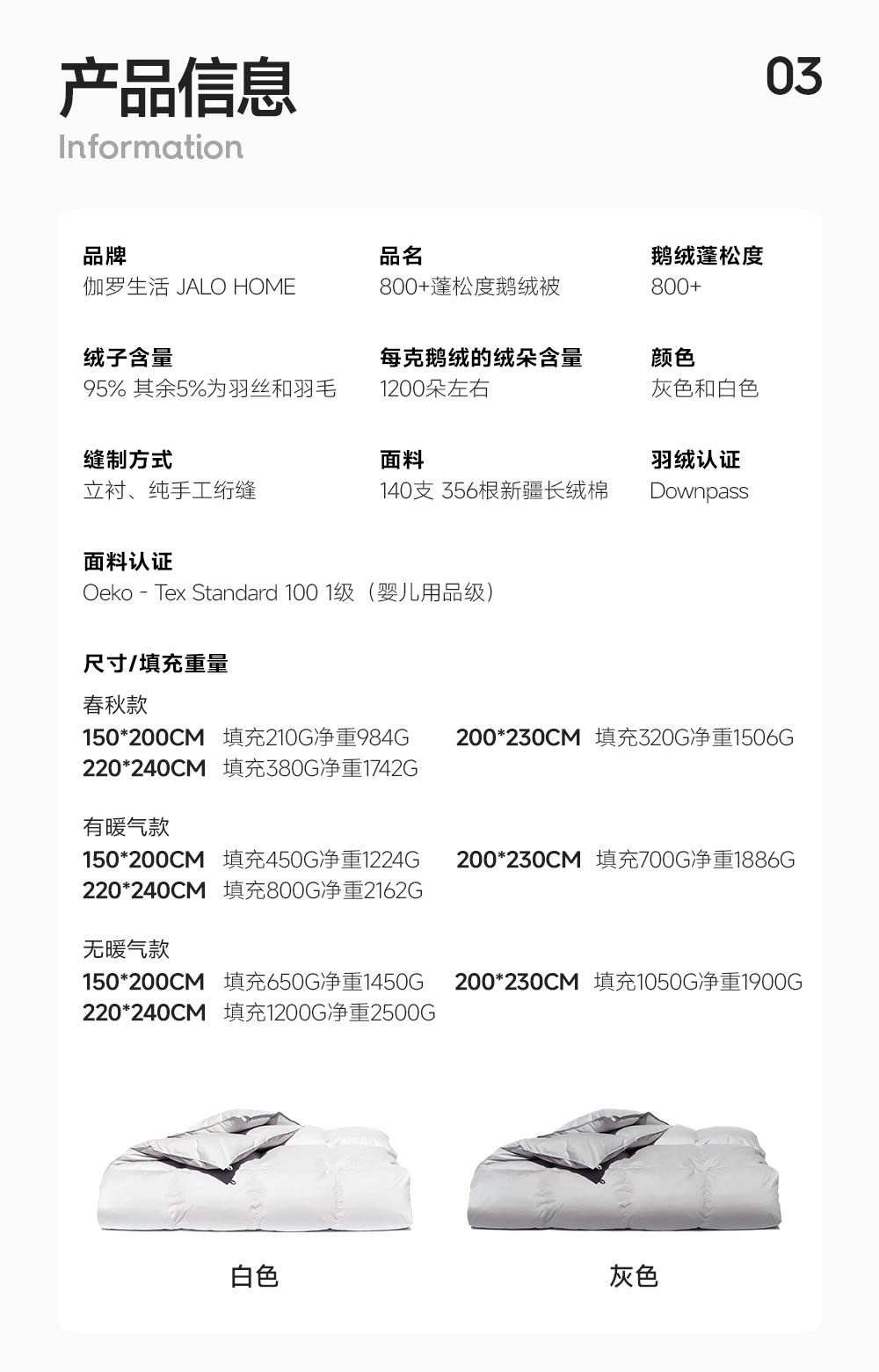 伽罗 JALO 140支800+蓬松度鹅绒被冬季款(2025款)