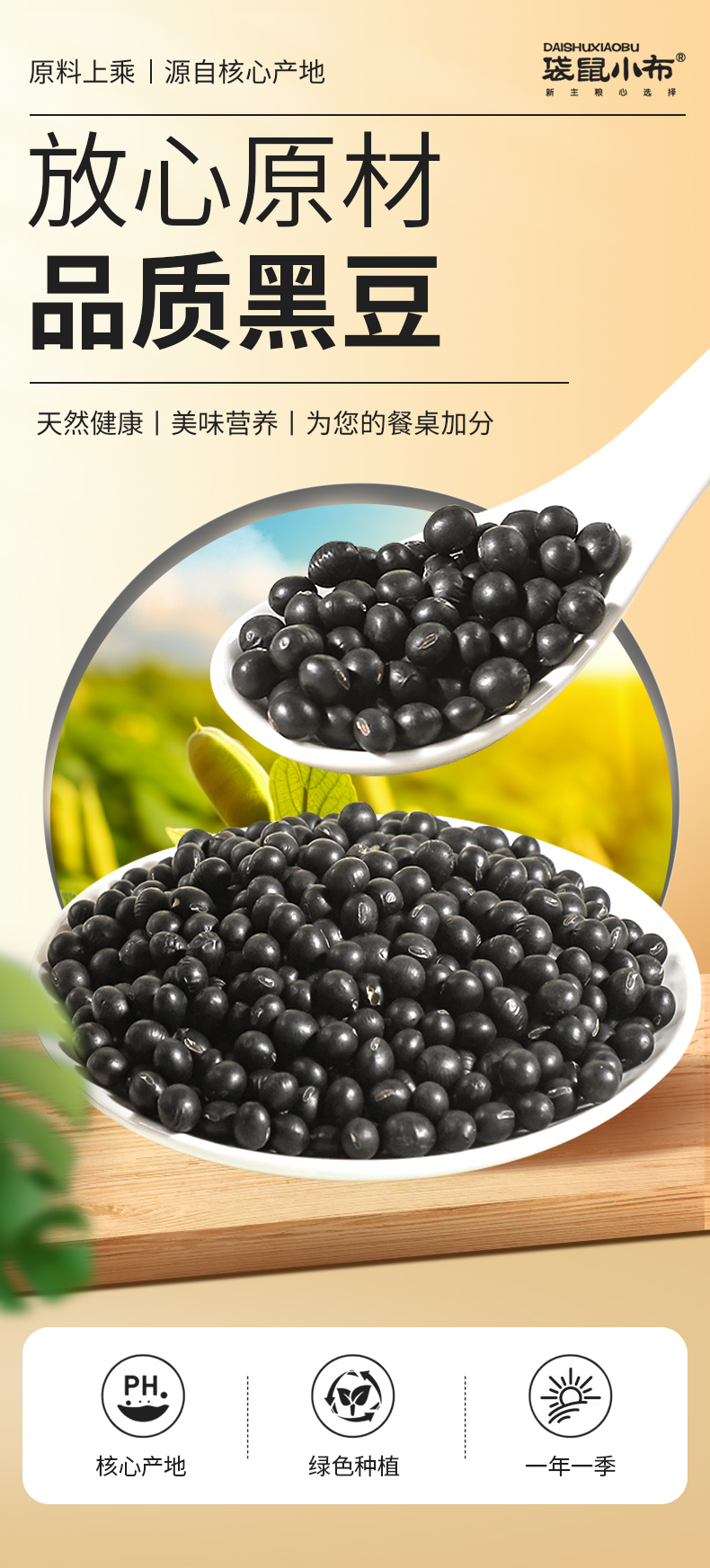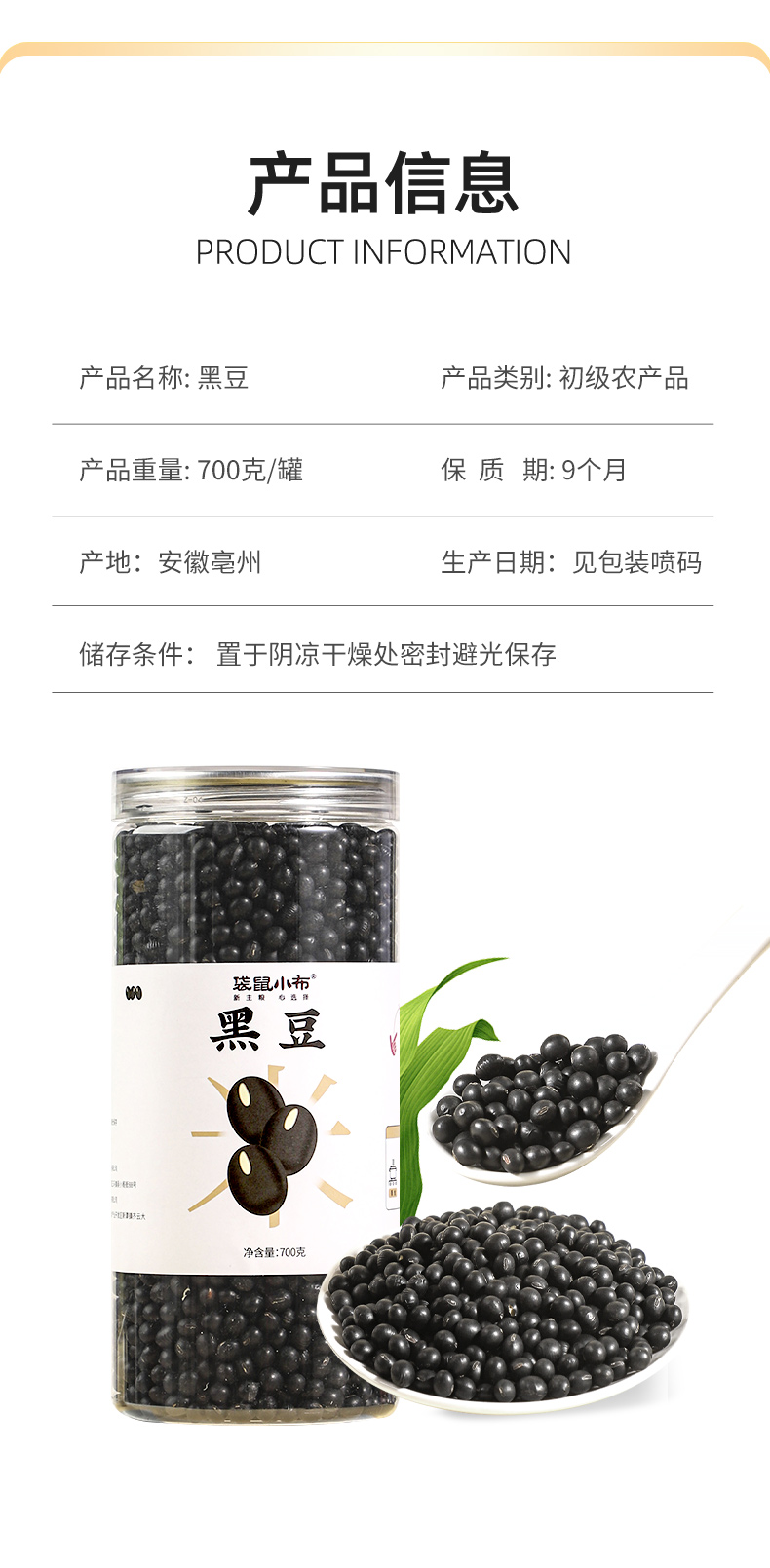 袋鼠小布绿心黑豆一级精选农家自产非转基因五谷杂粮黑豆 700g/罐