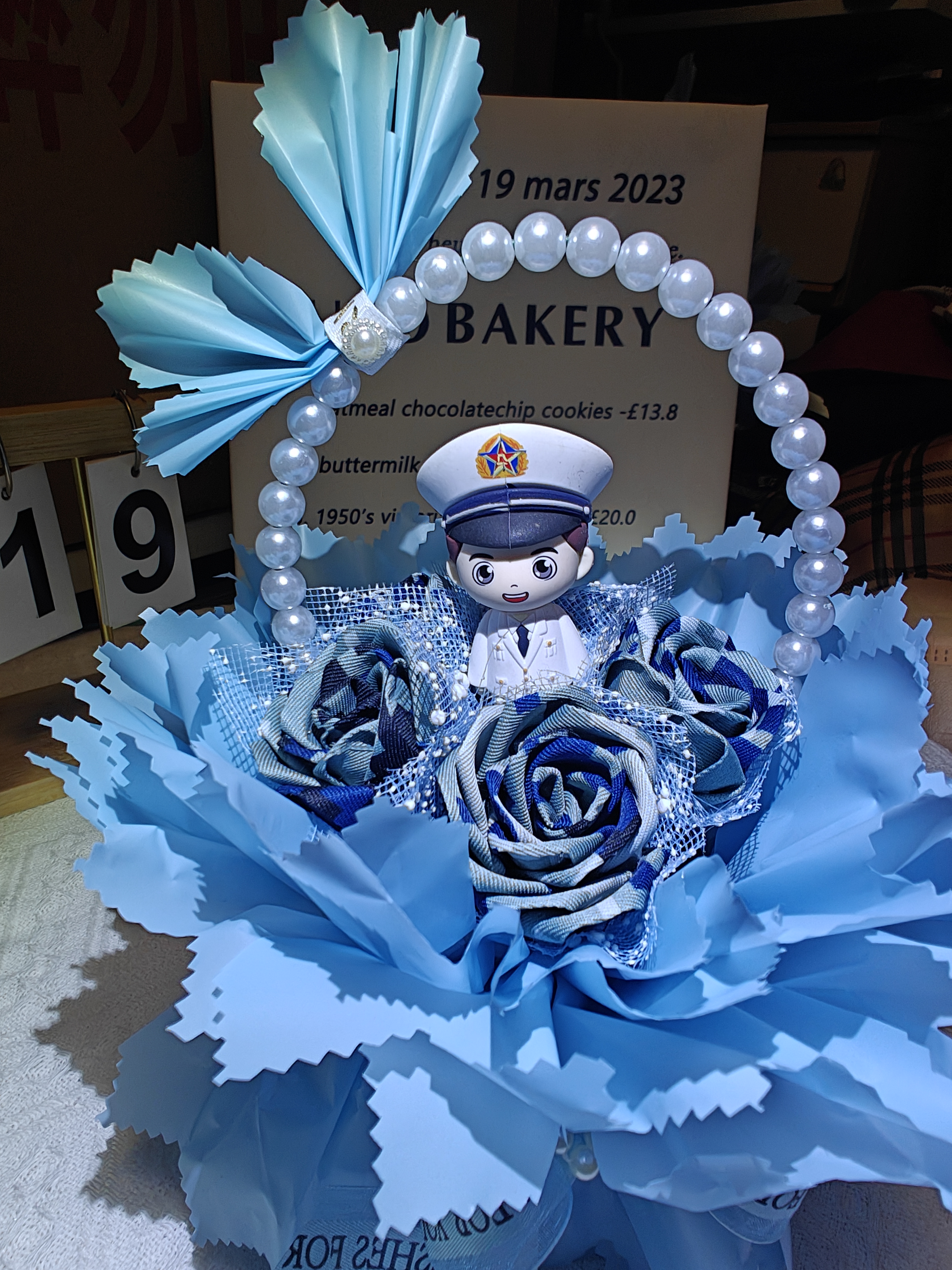 【公仔5朵花束】手工DIY牛津布5朵玫瑰花束军恋礼物情人节礼物(手工制作产品不支持退换货哦)类lb