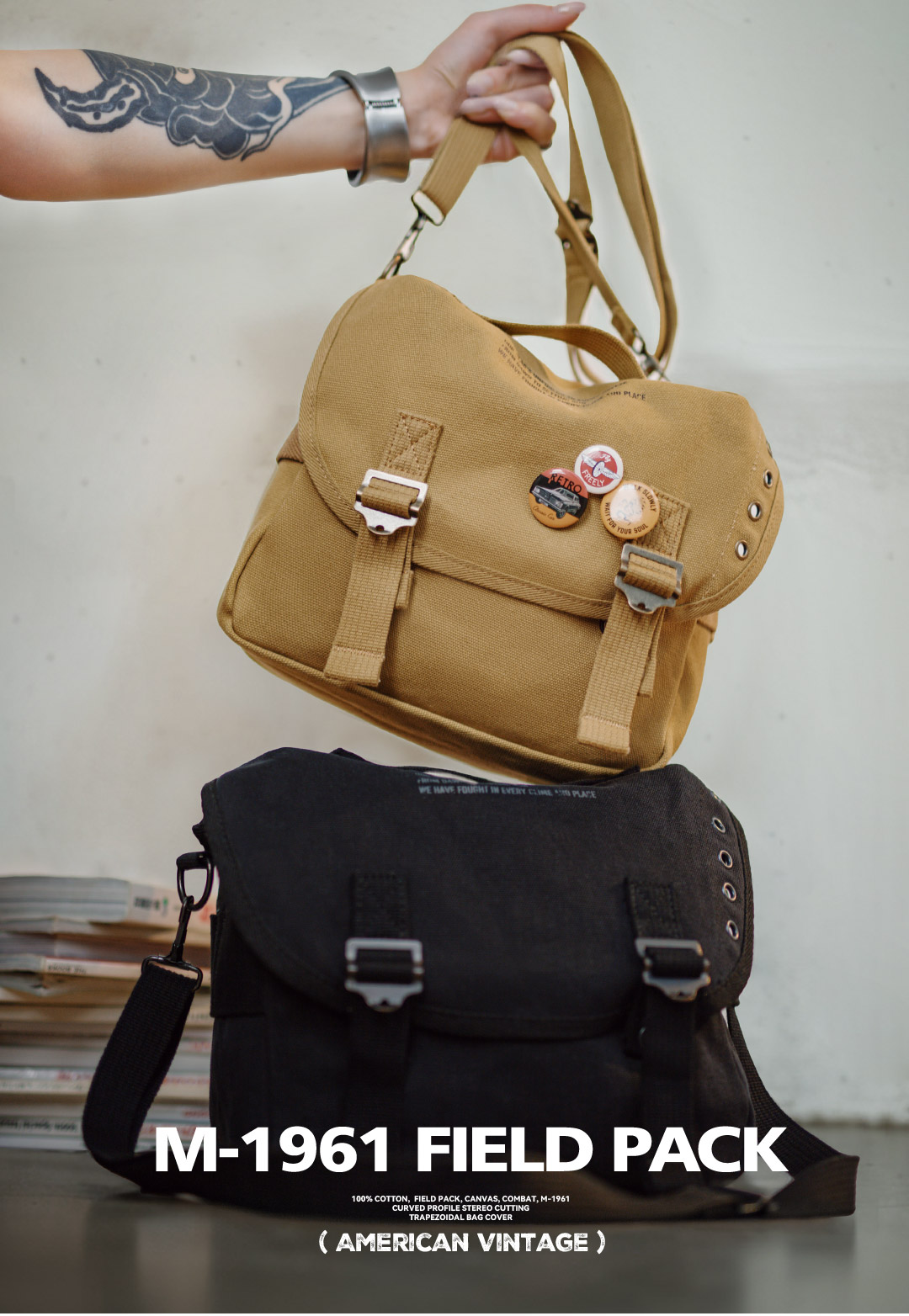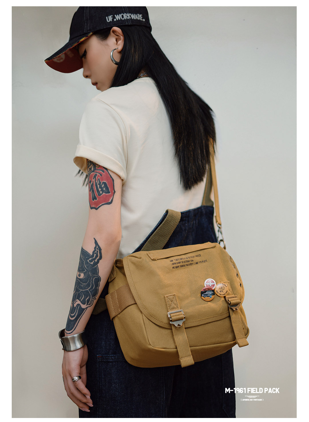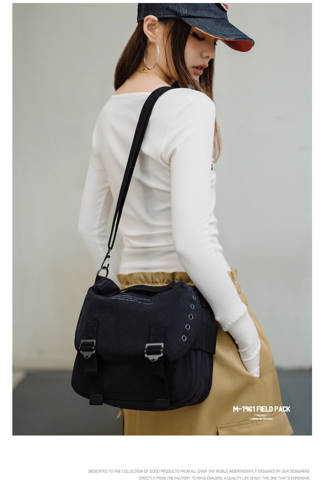 马登美式复古M1961字母印花帆布斜挎包手提时尚大容量托特包夏女
