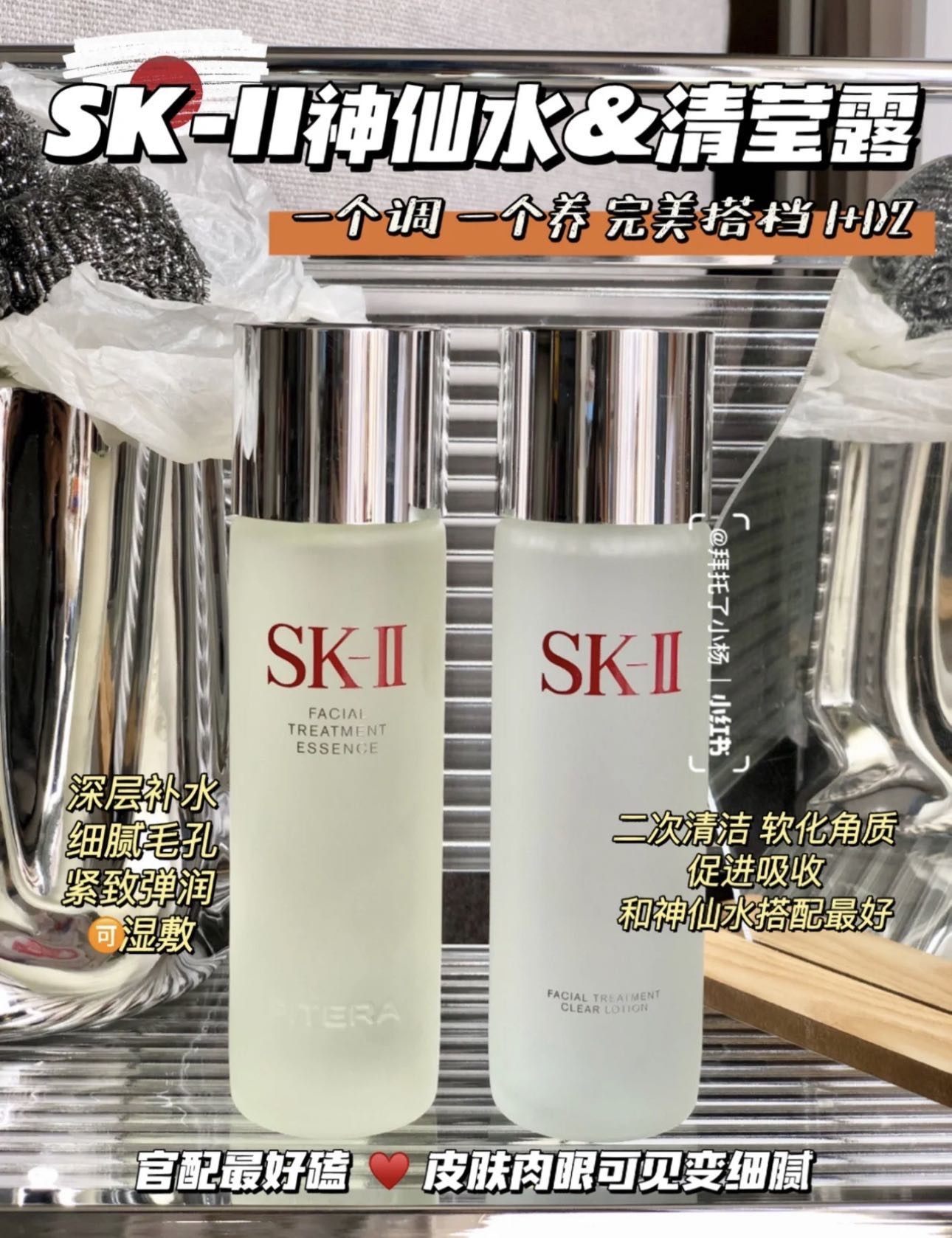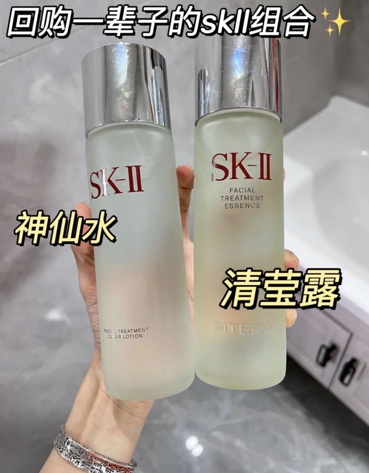 神仙水➕清莹露套装,清莹露跟神仙水到底区别在哪里,一个调,一个养,二者缺一不可,清盈露是化妆水,清洁肌肤,打开毛孔,神仙水是精华水,前步一定要用清莹露。