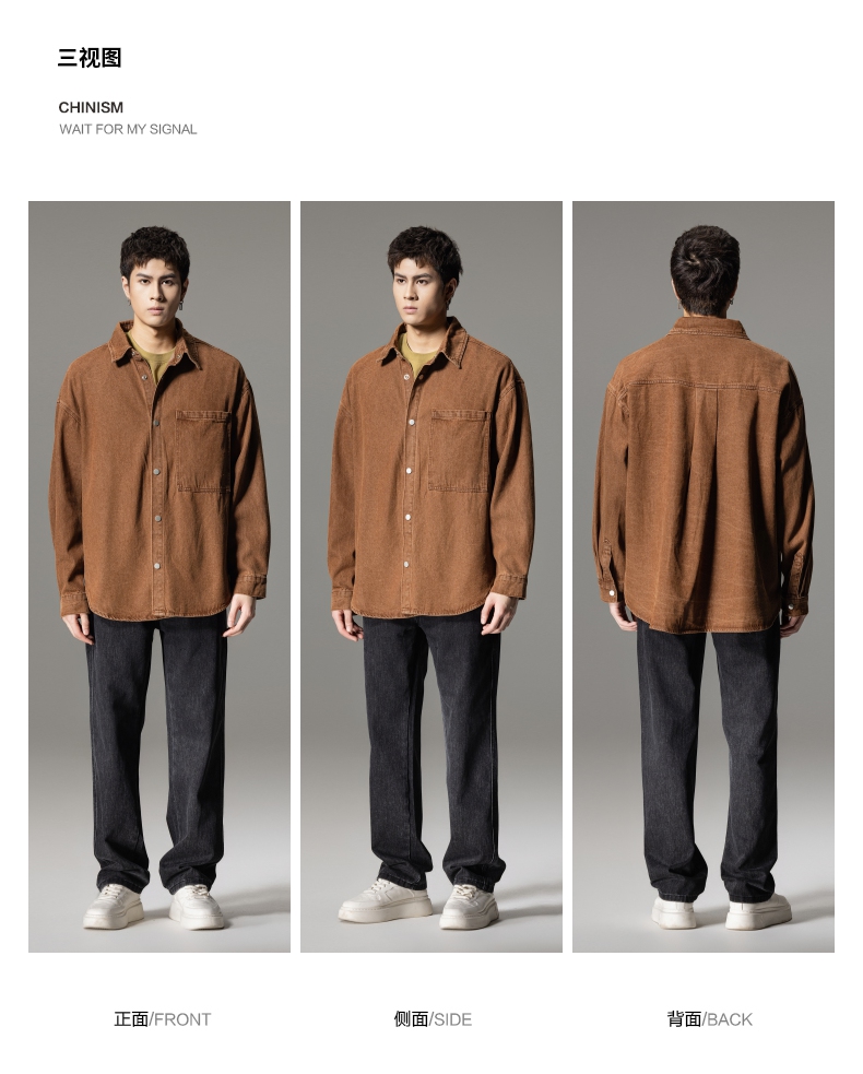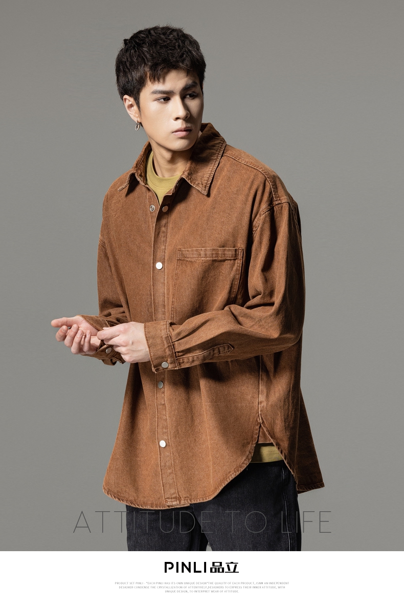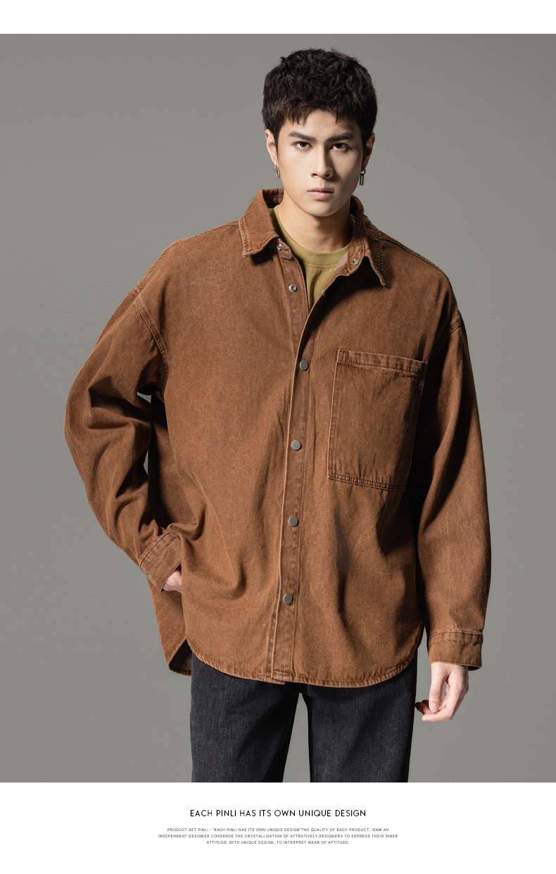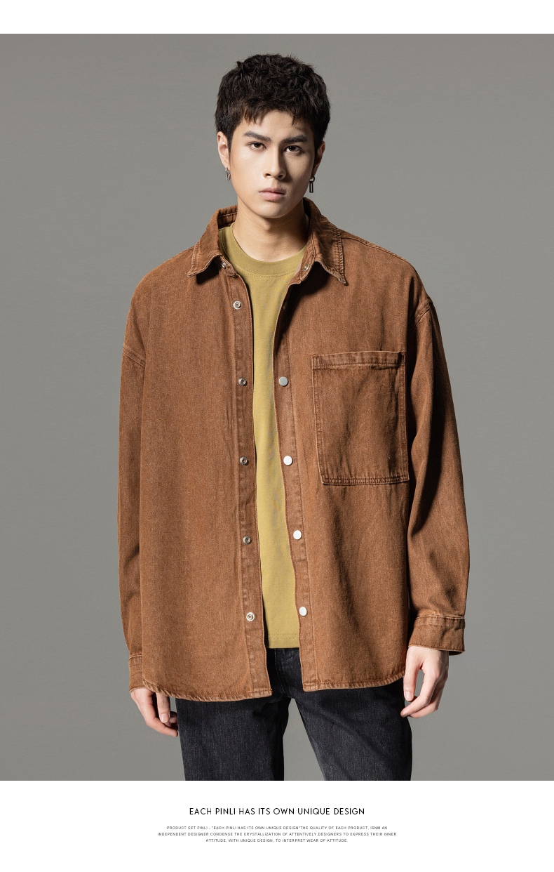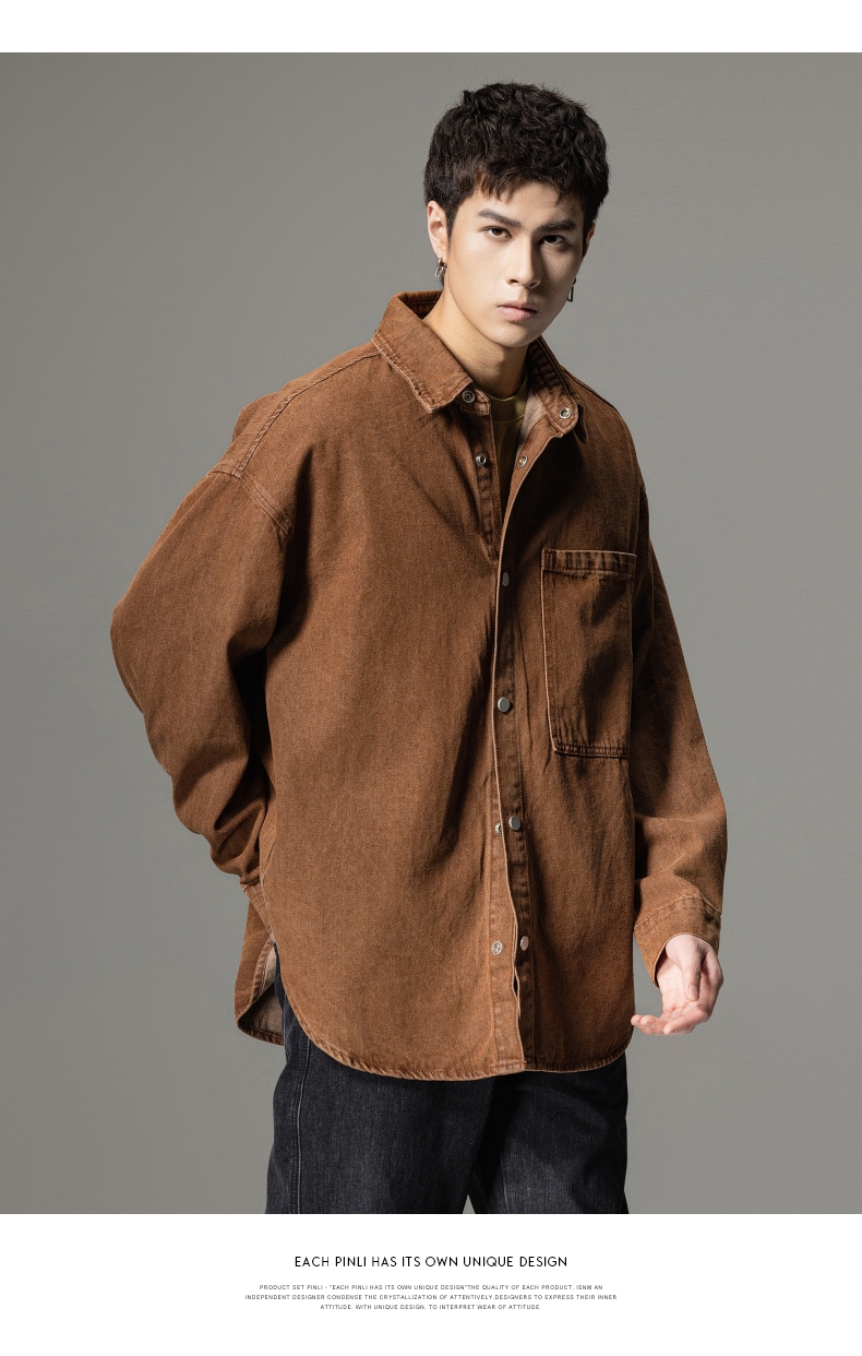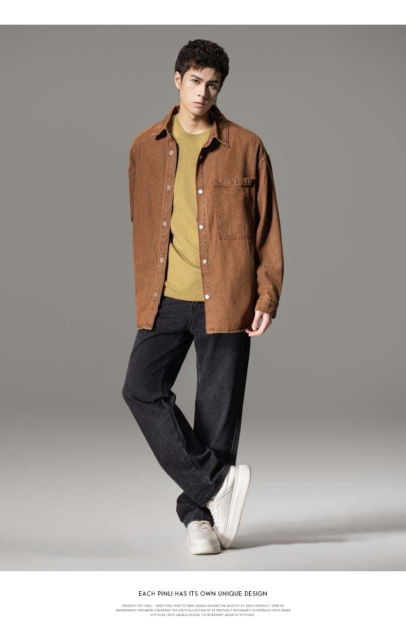 PINLI品立2024春季新款纯色宽松牛仔外套男士休闲夹克GD241104044