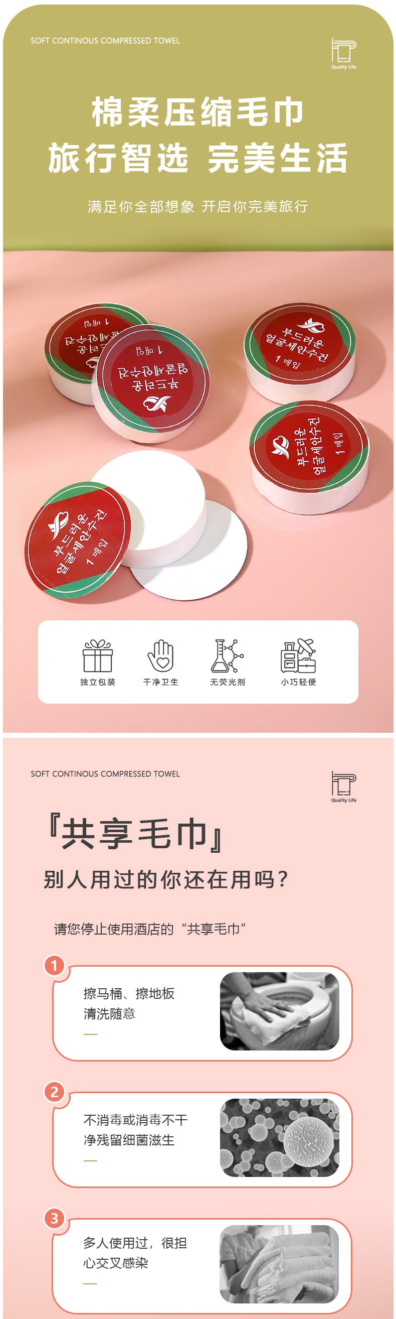 【旅行必备!一次性压缩毛巾】压缩毛巾纯棉加厚,珍珠纹压缩洗脸巾。旅行、运动、户外、方便卫生,柔软舒适,轻松携带。li