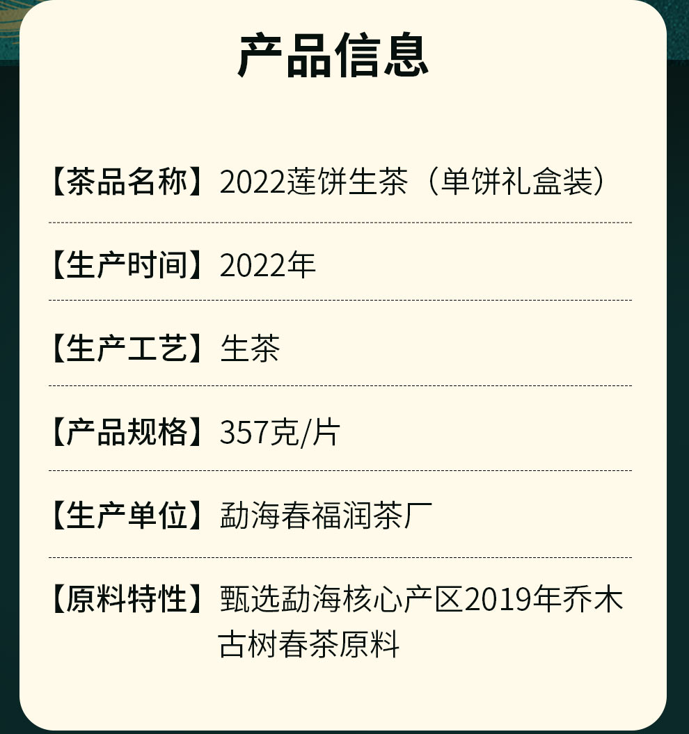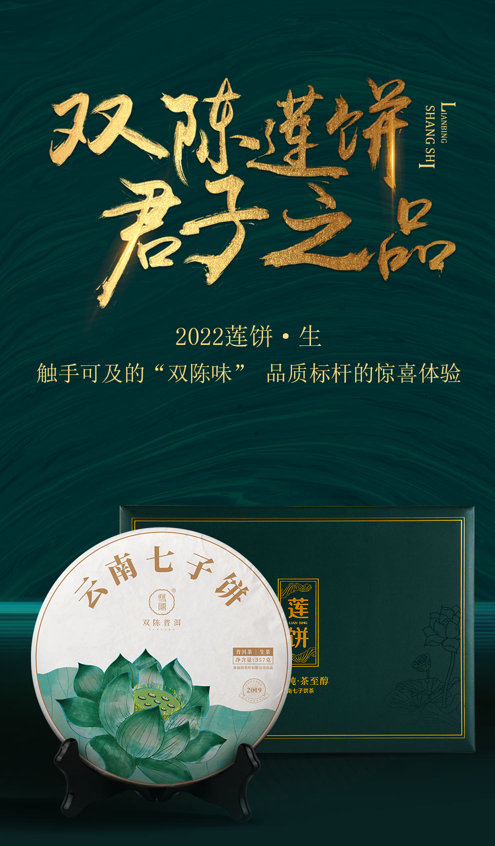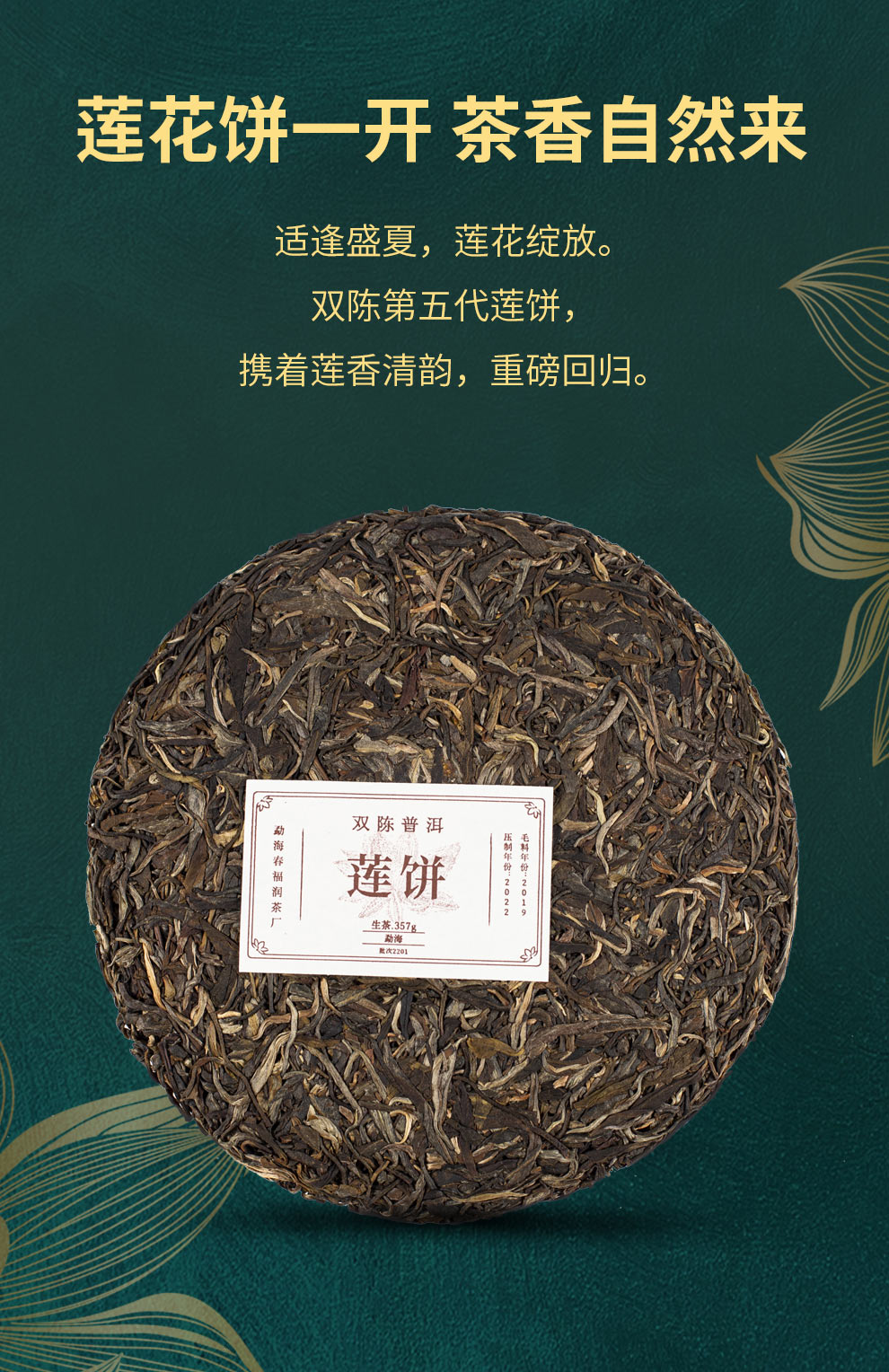 双陈 2022年莲饼普洱茶生茶1片(357克/片)礼盒装