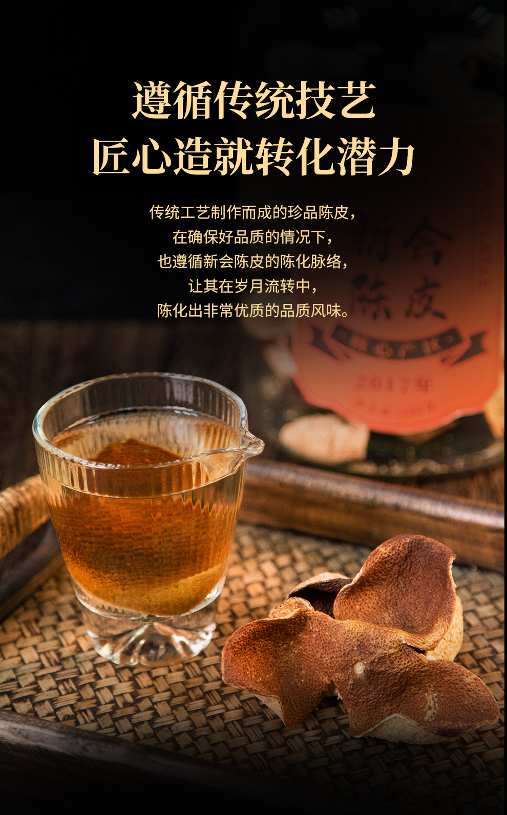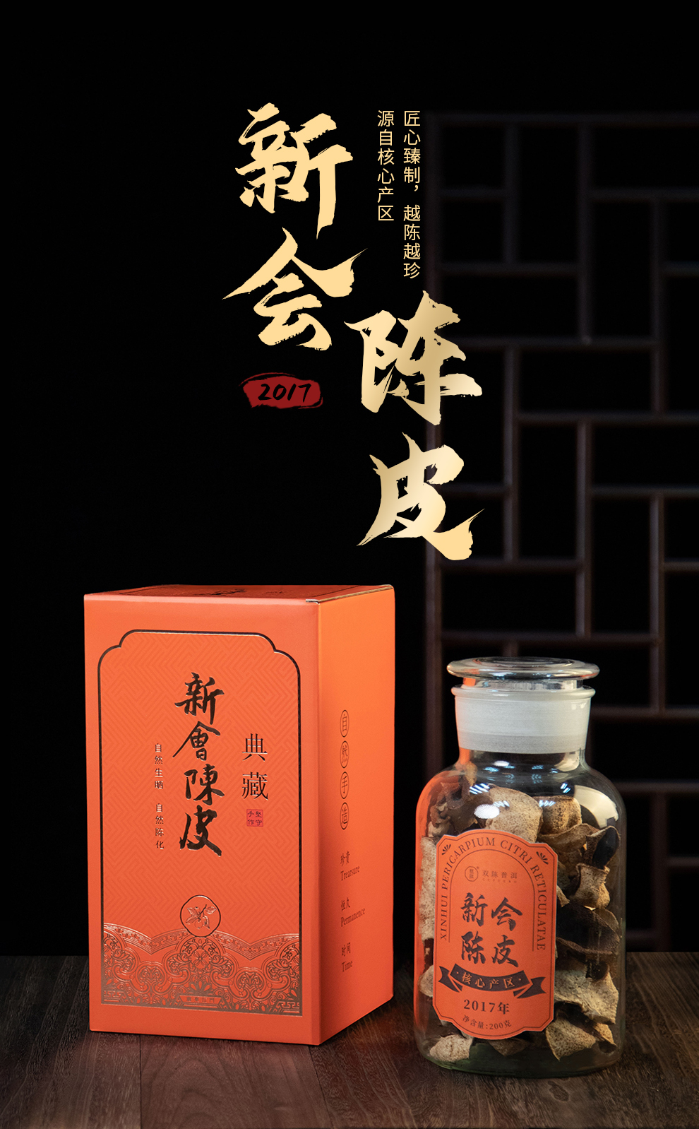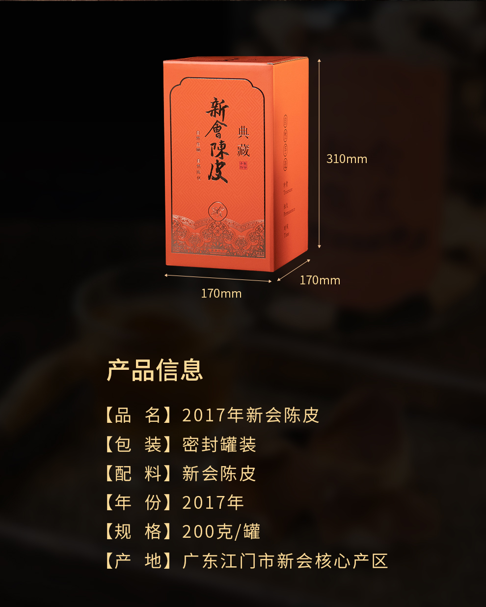 2017年新会陈皮200g/罐干仓陈化自然生晒片片饱满果香浓郁玻璃防潮密封礼盒送礼档次高