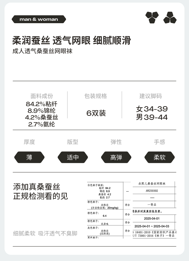 Dorsill朵熙儿 成人桑蚕丝通勤袜6双装