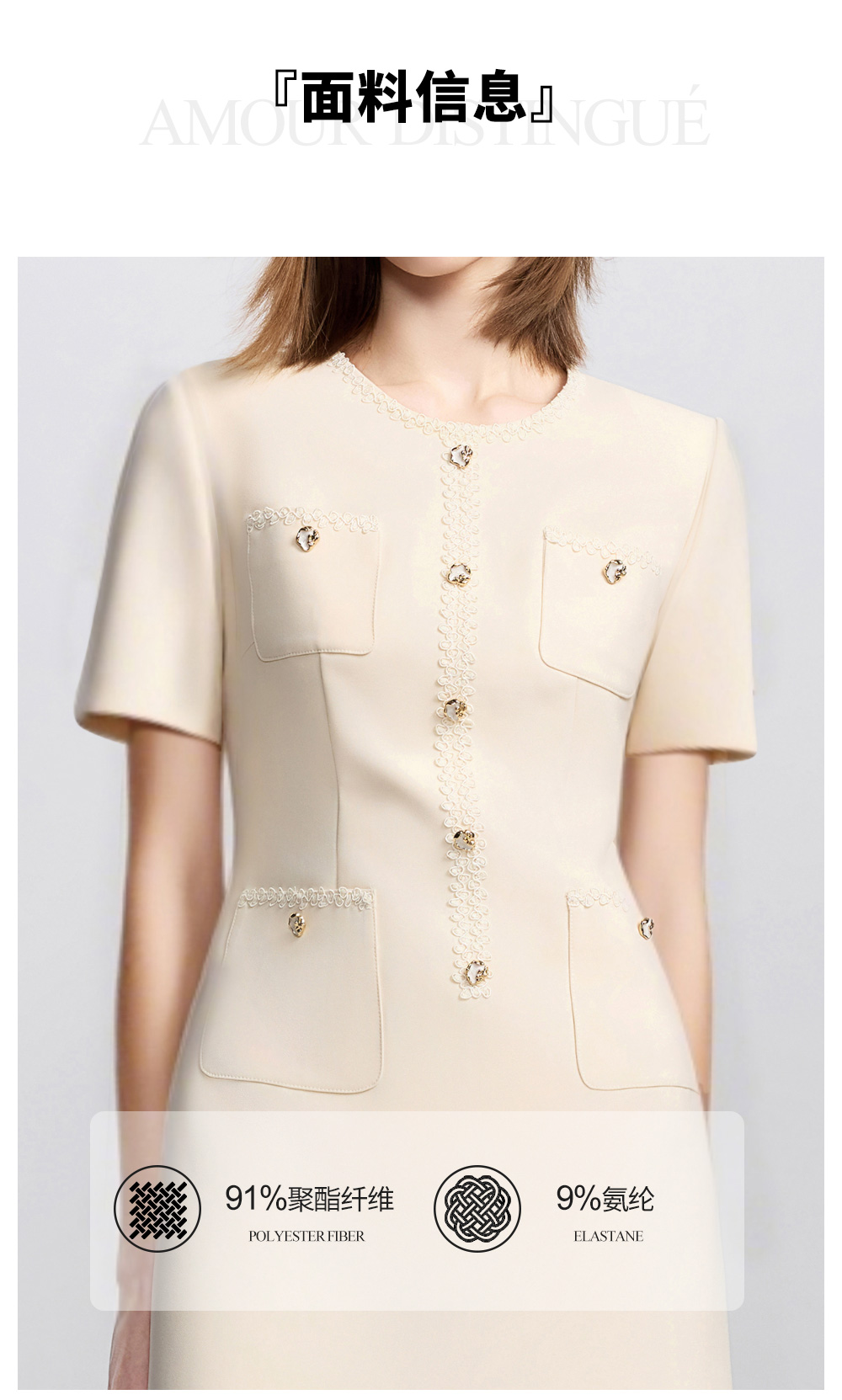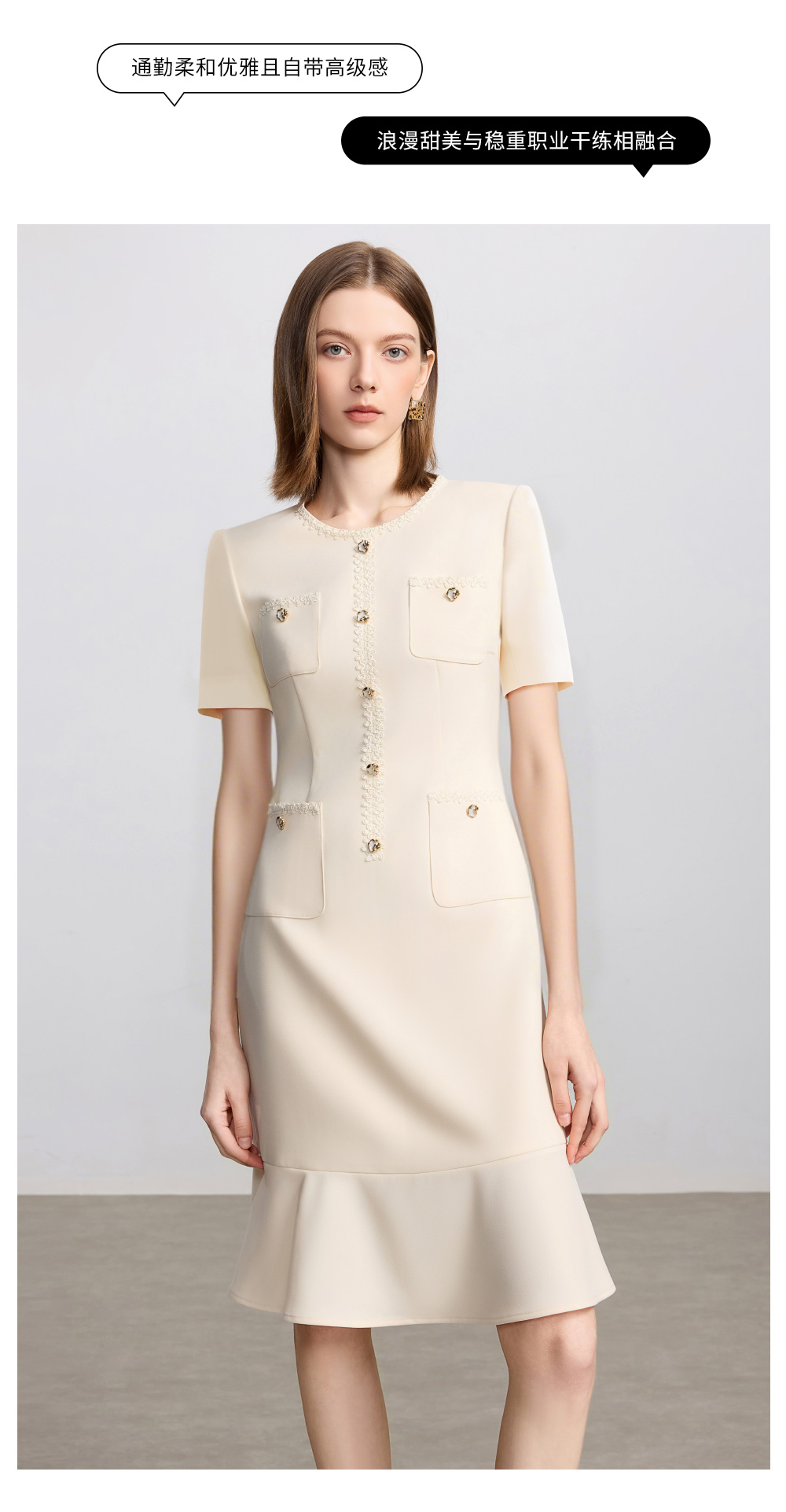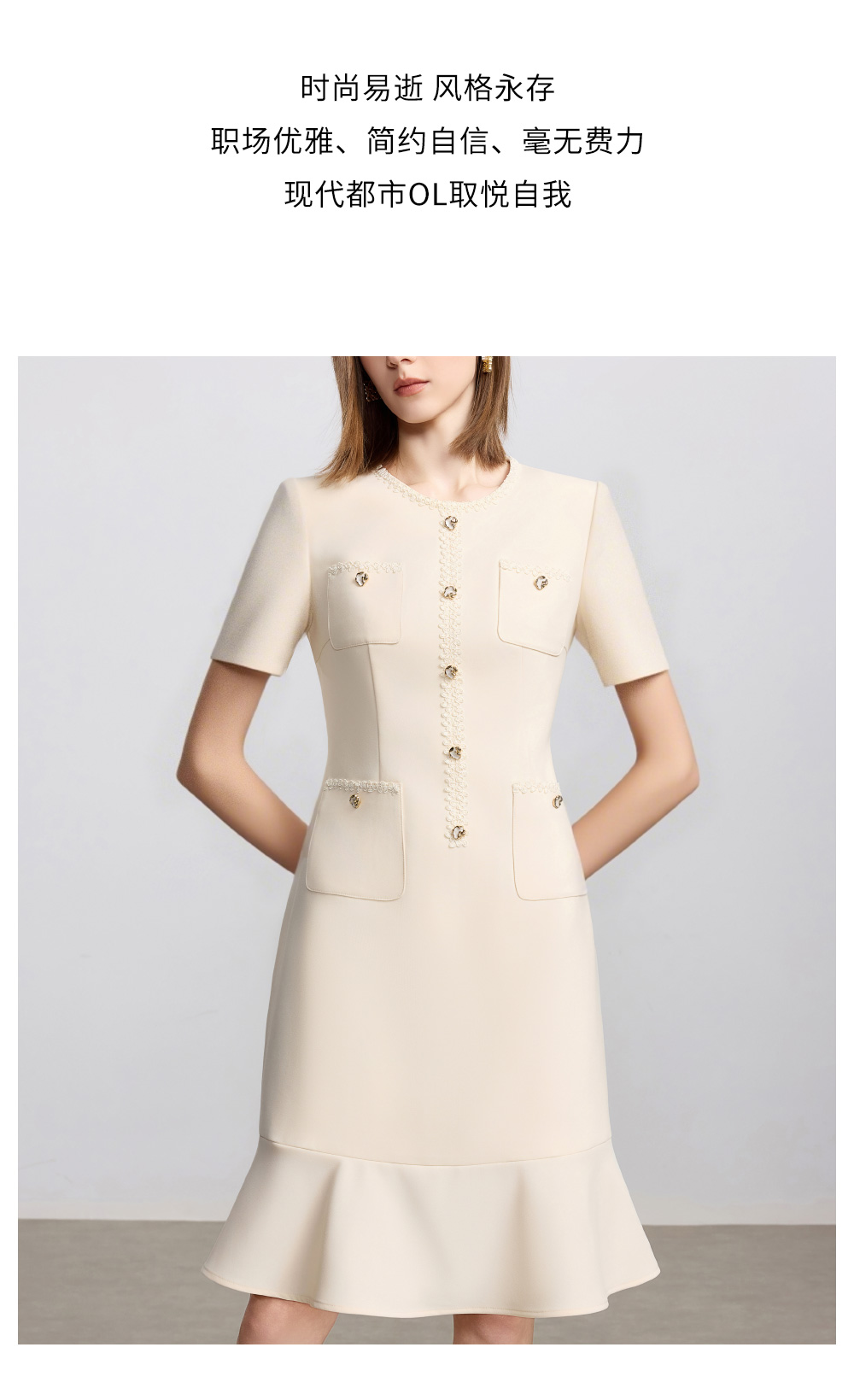 AD米白色小香风日常通勤连衣裙女2025新款夏季前台接待美容院工作
