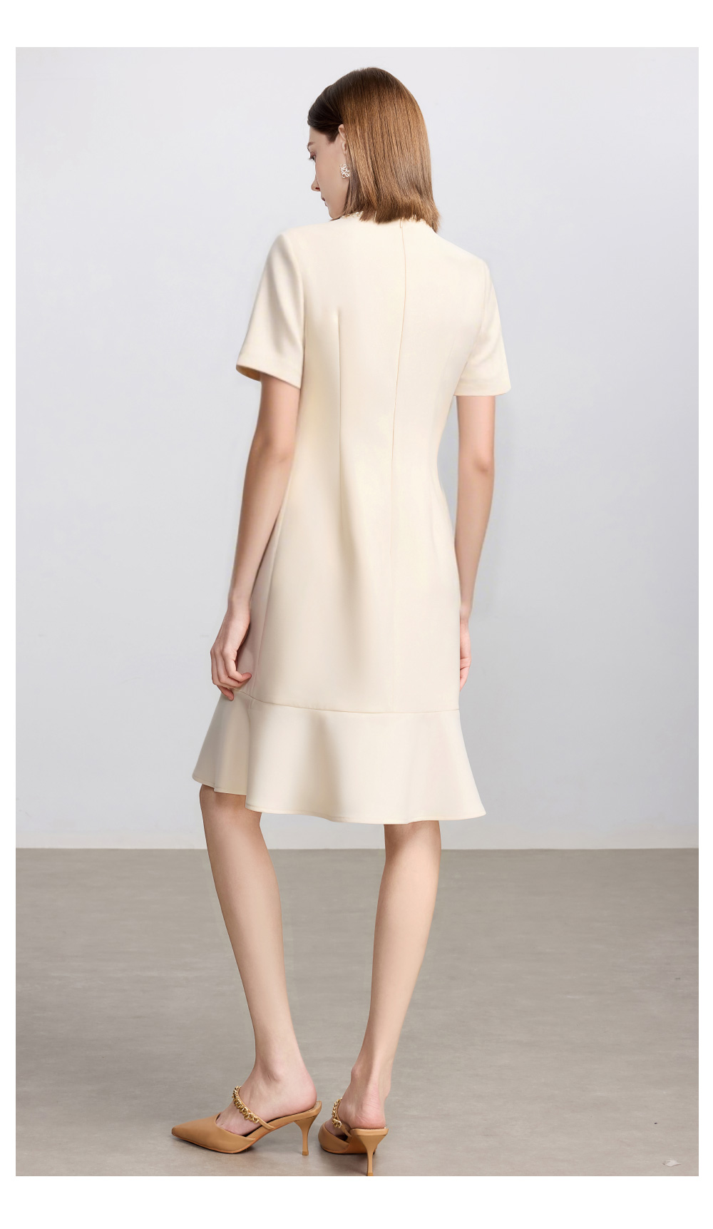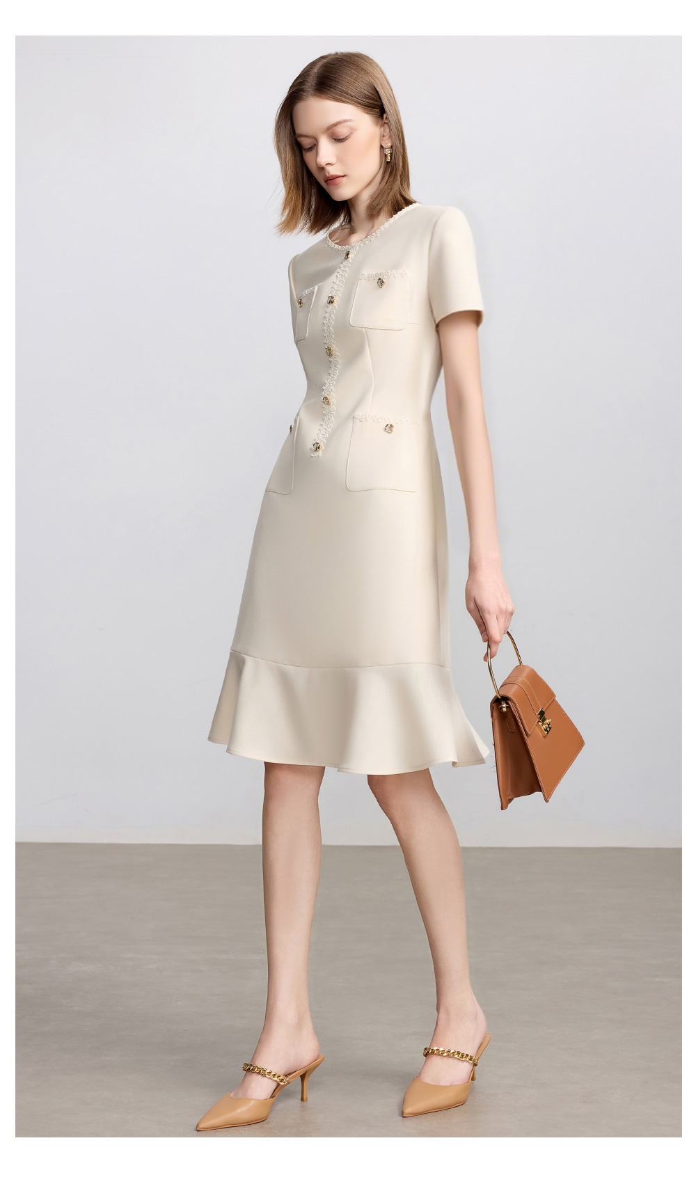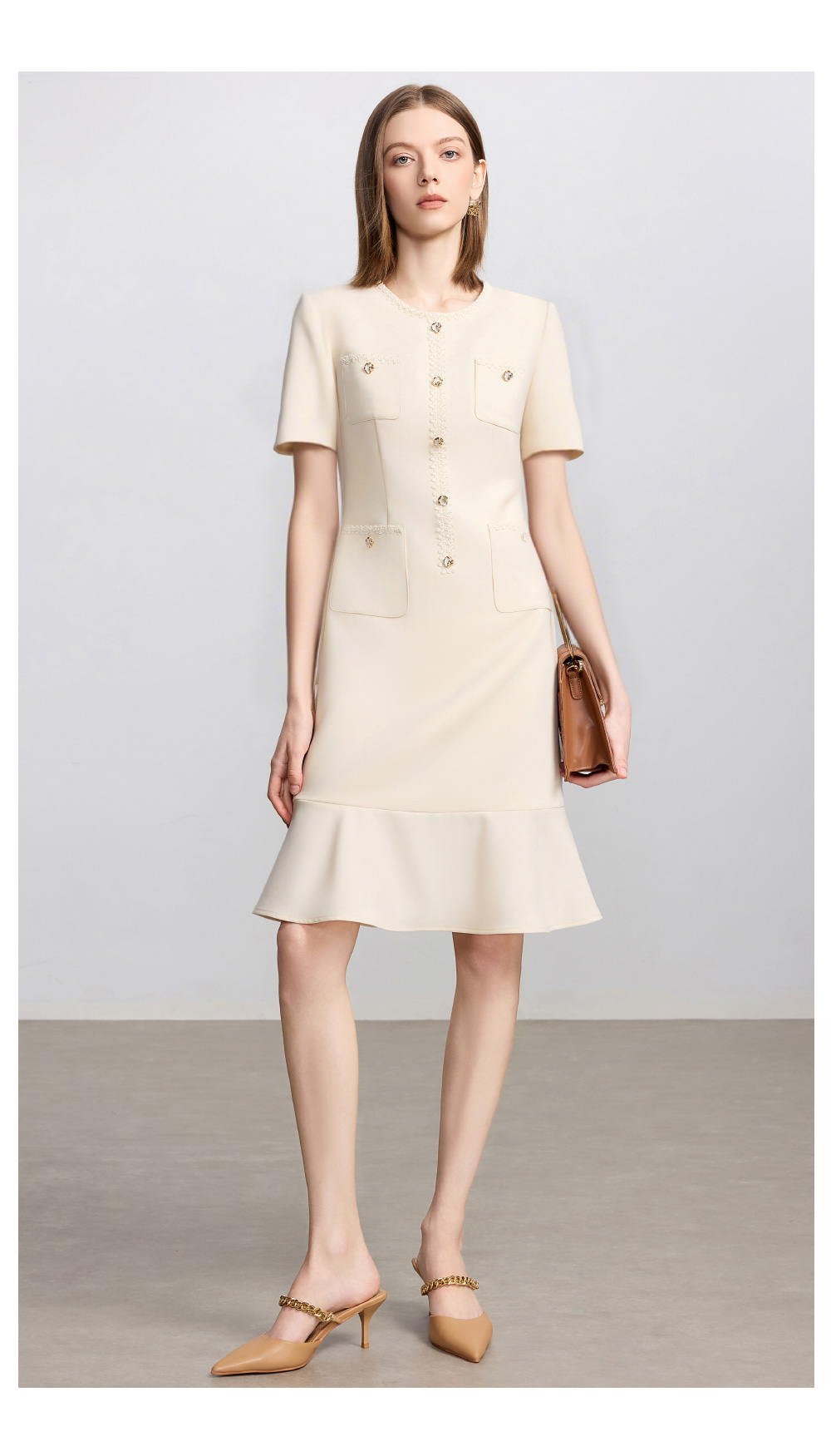AD米白色小香风日常通勤连衣裙女2025新款夏季前台接待美容院工作