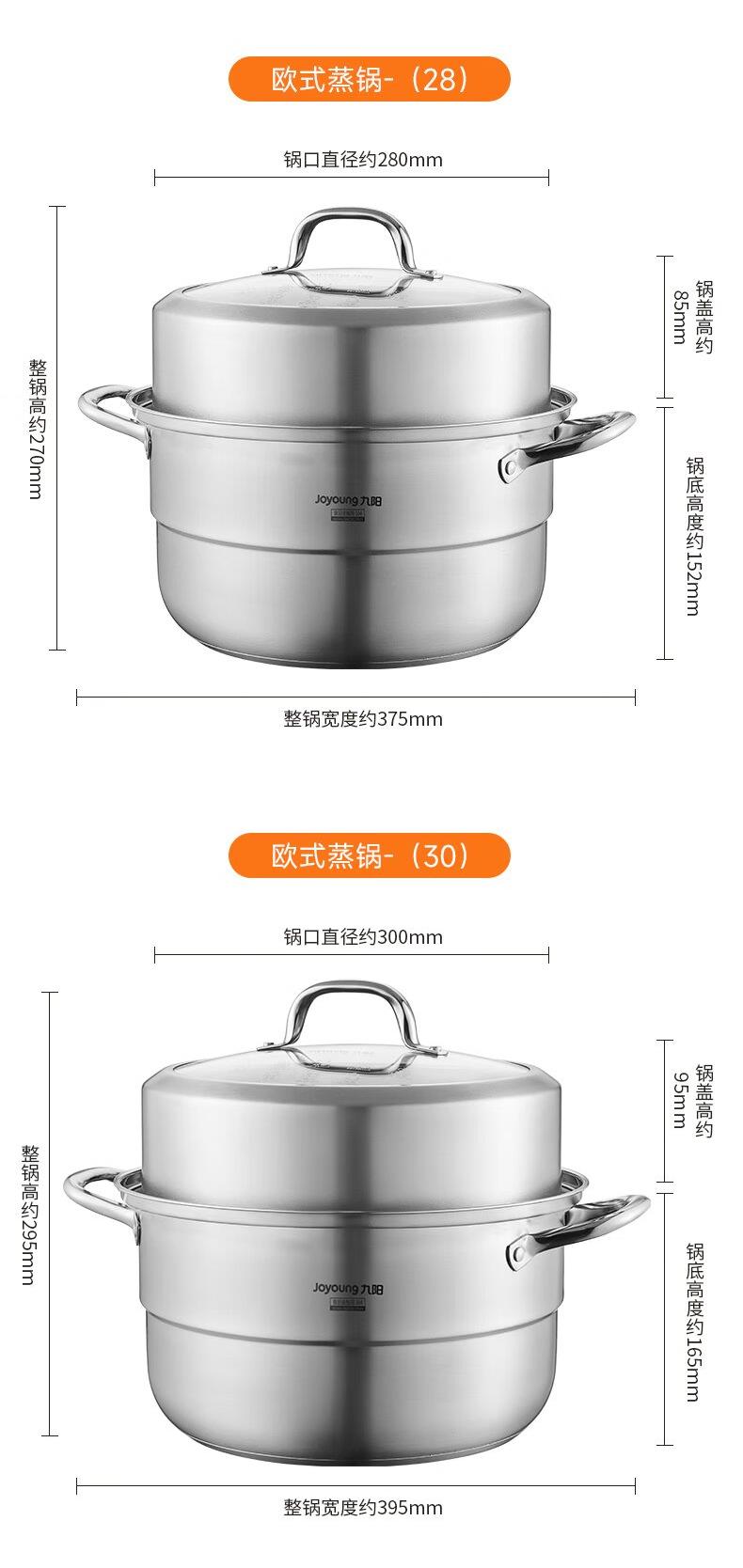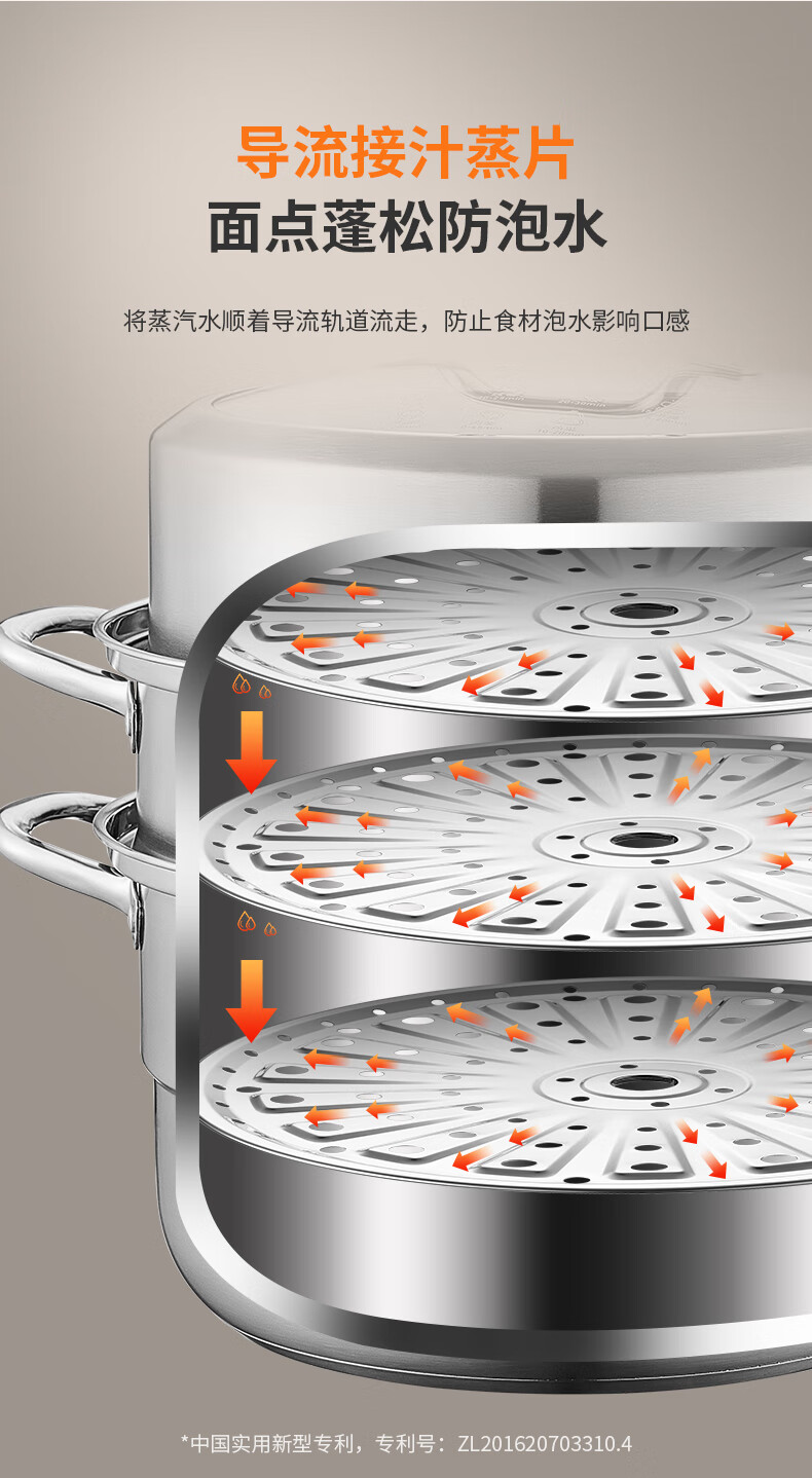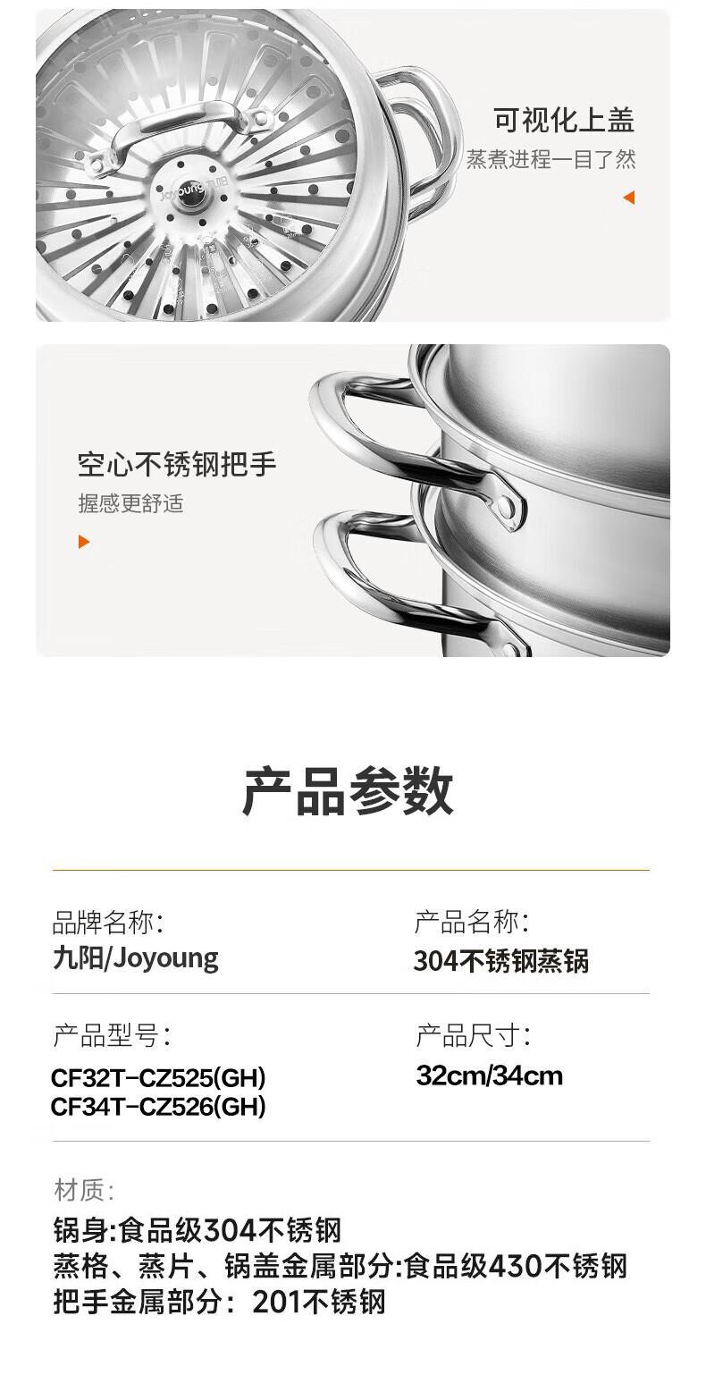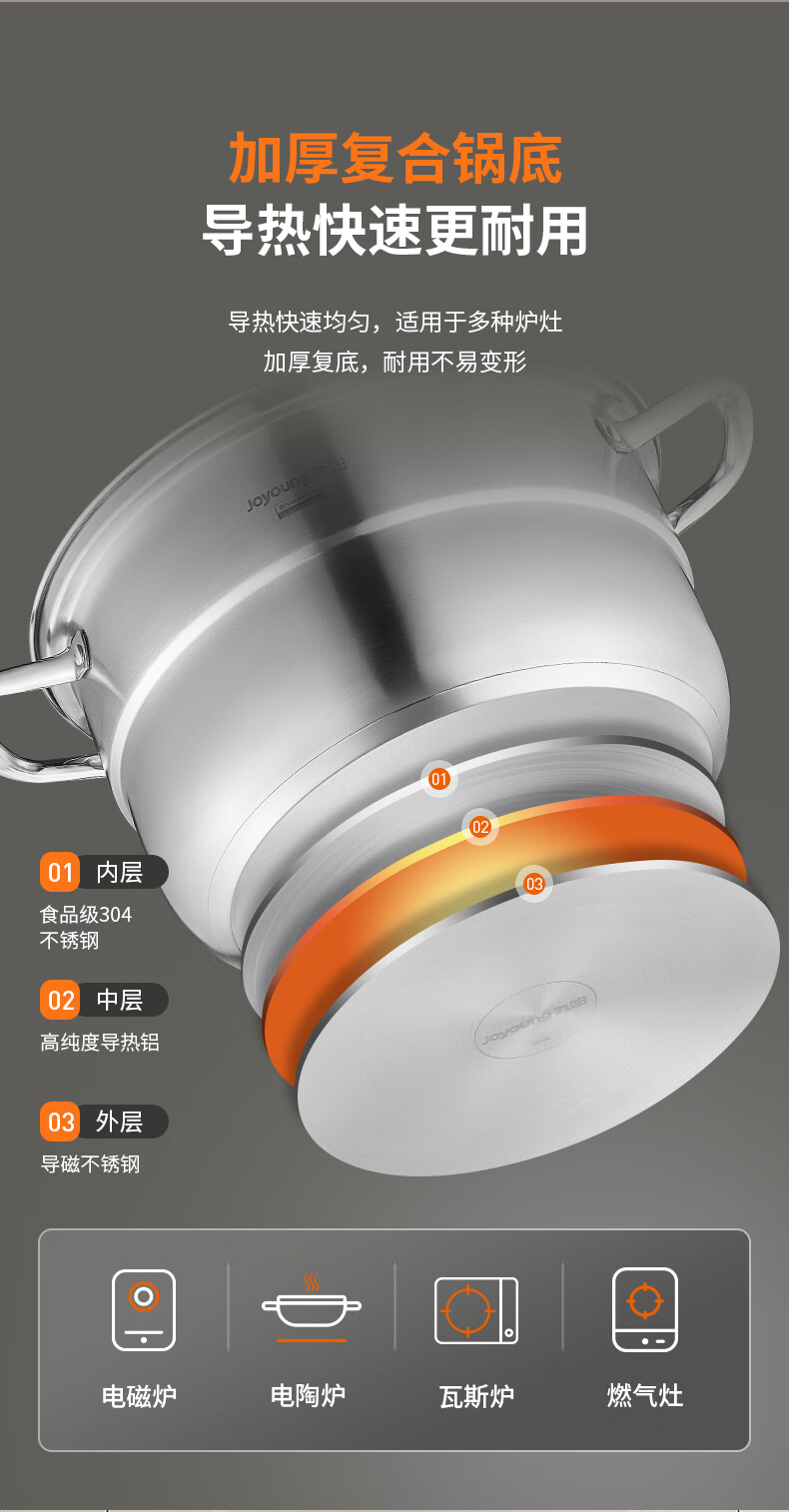 九阳304不锈钢蒸锅加高拱盖大容量蒸煮三层可蒸包子馒头磁灶通用