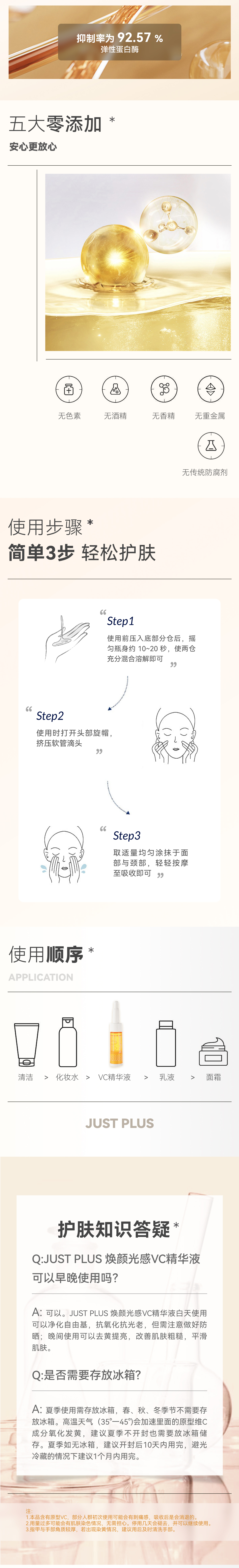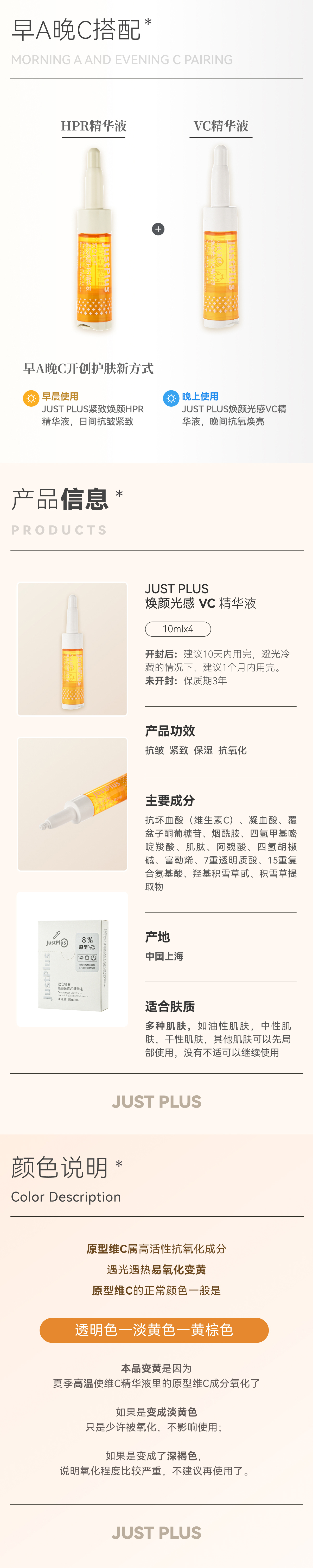 【JUST PLUS美白精华】早A晚C 创新双仓锁鲜技术, 减少自然氧化!肤感优化,清爽不油腻,吸收快!分享采用 8%原型VC和多种成份协同,帮助改善肤色暗沉、美白、淡化斑点、痘印等