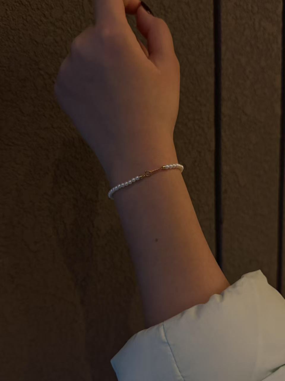 3-4mm小米珠显得格外小巧,灵动; 珠光流转间; 18K金扣头小米珠手链以其适度的存在感