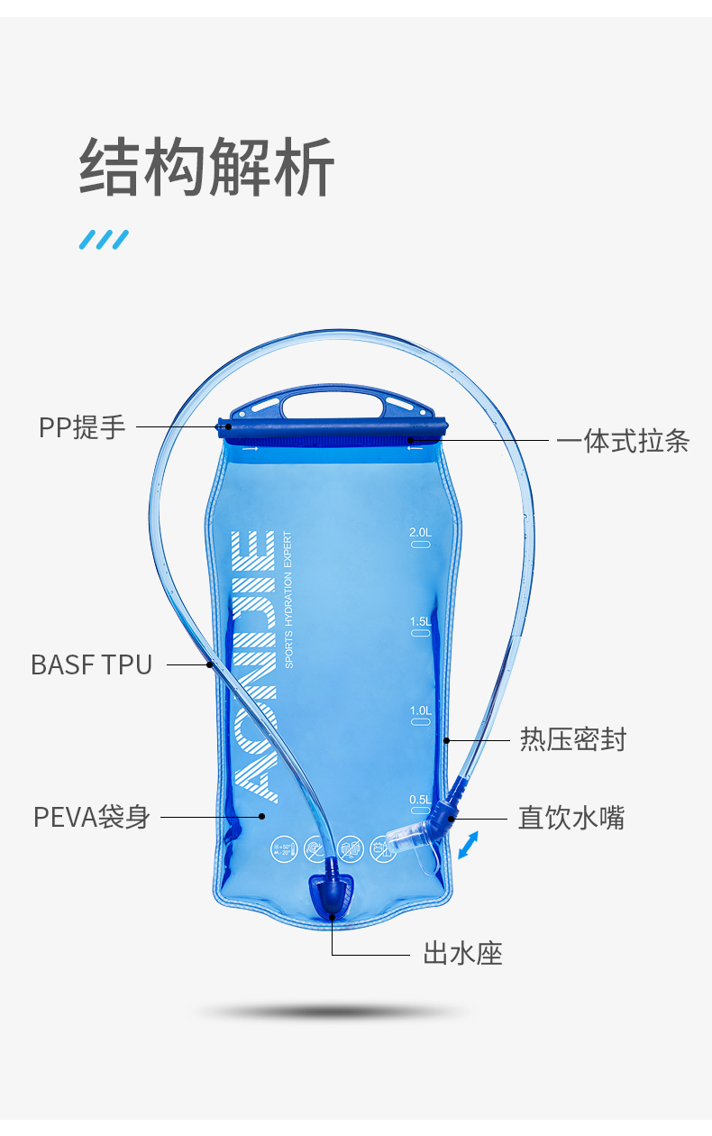 奥尼捷户外饮水袋便携越野骑行喝水壶登山徒步水袋跑步运动储水袋1L 1.5L 2L 3L/DS51