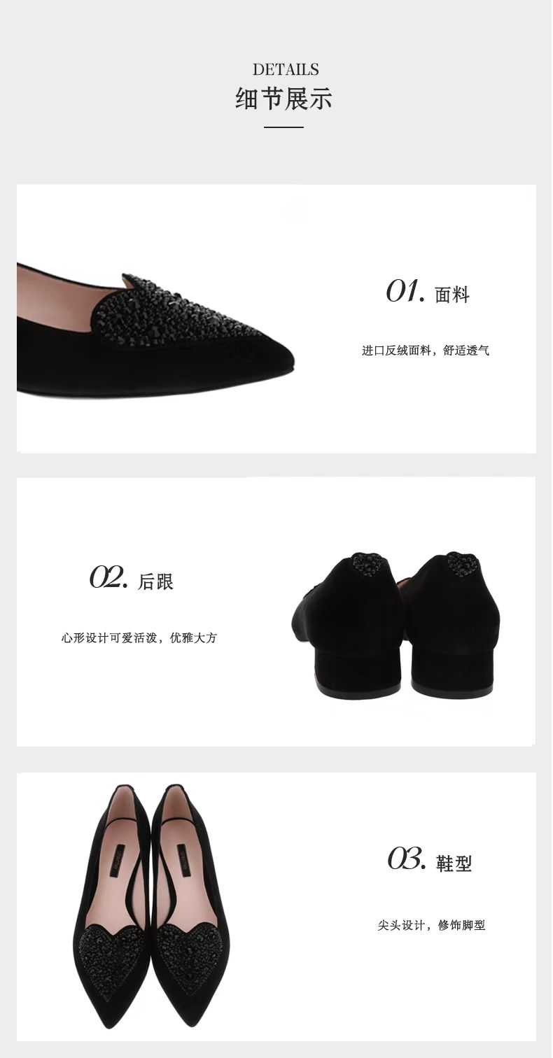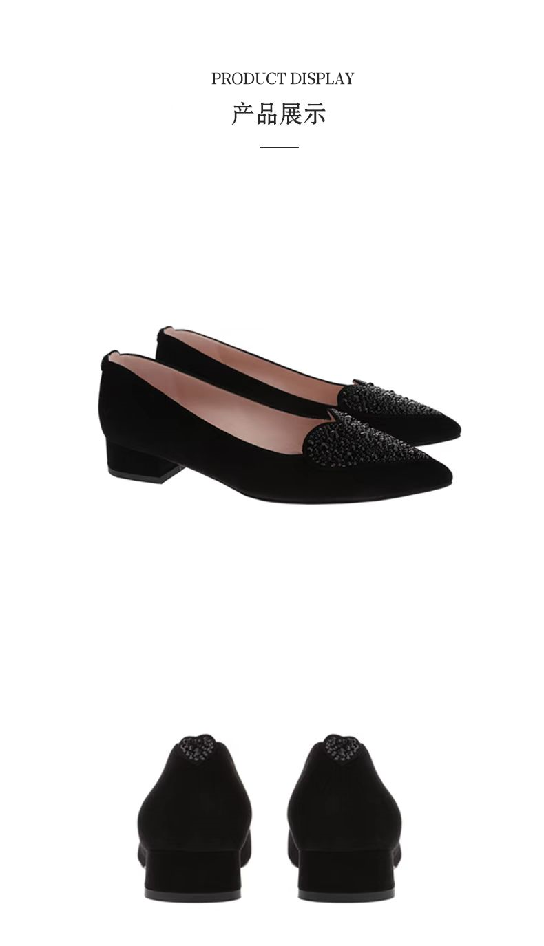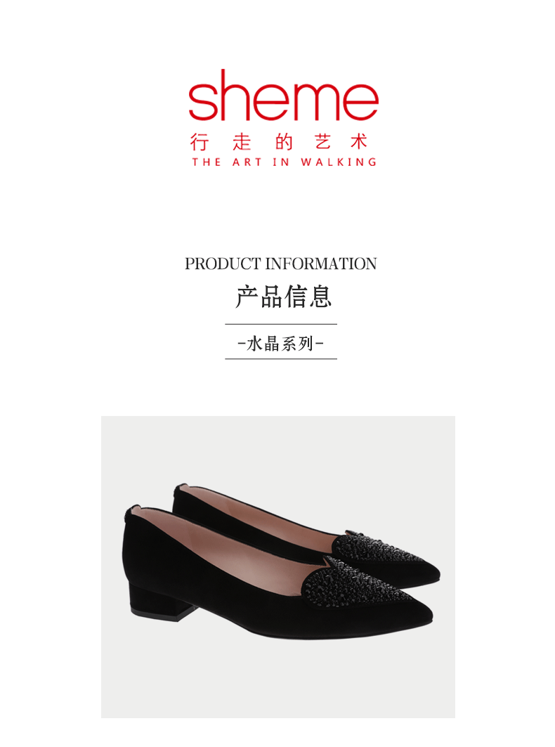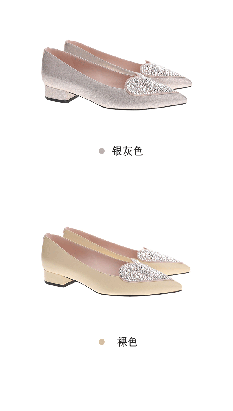sheme真皮女鞋尖头平底单鞋优雅时尚水晶烫钻可定制