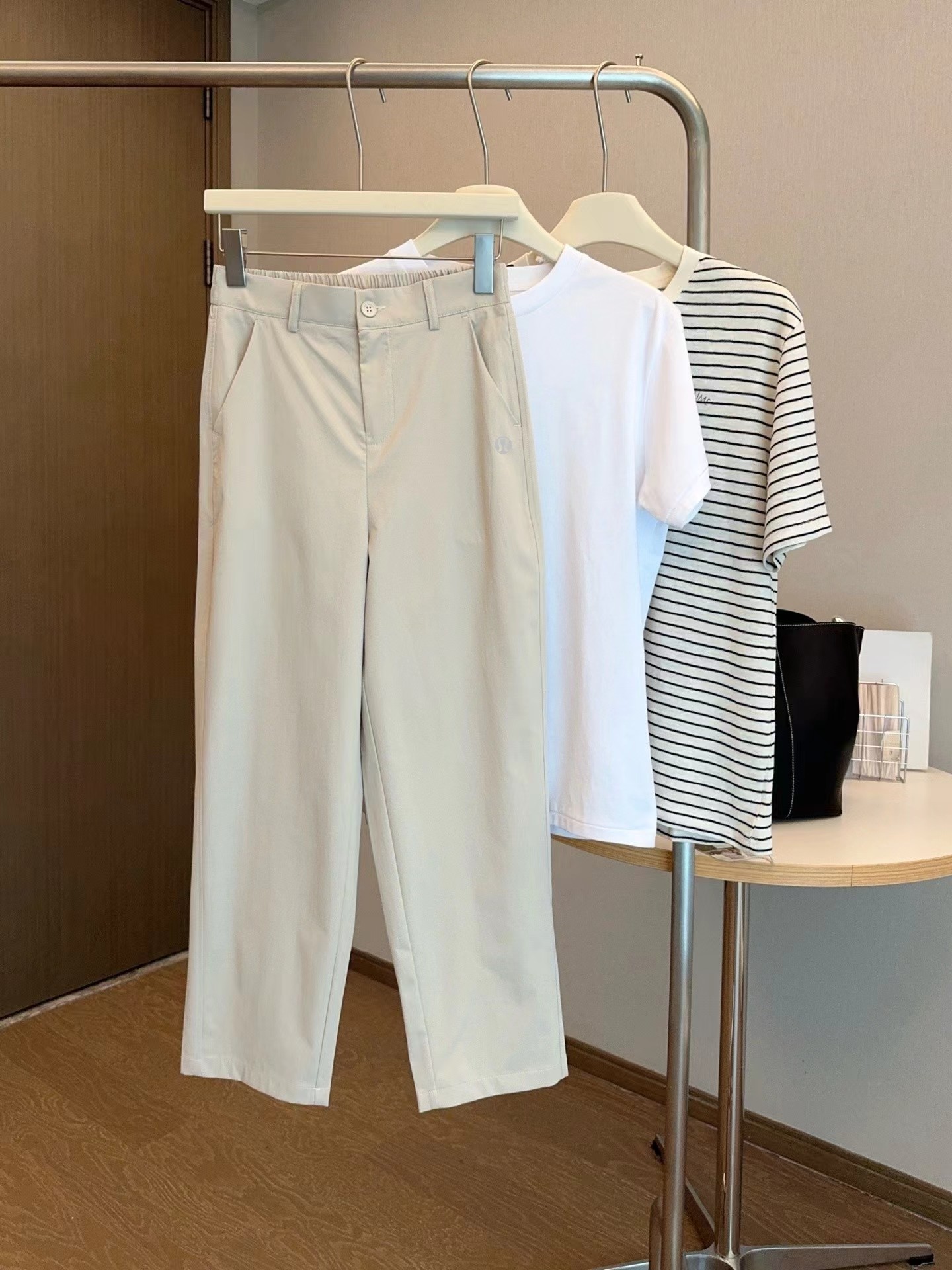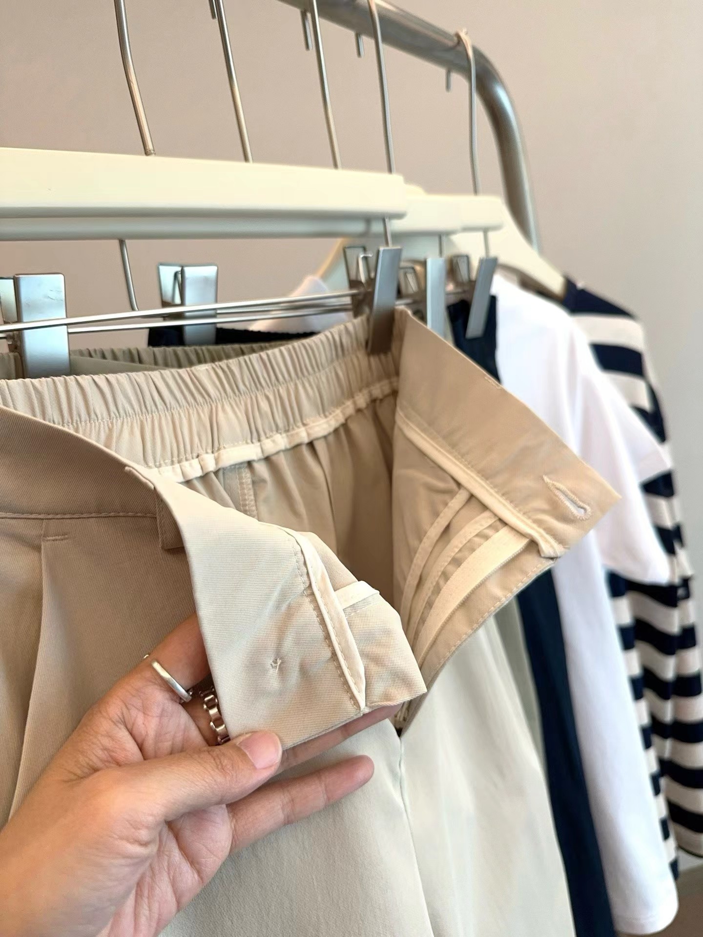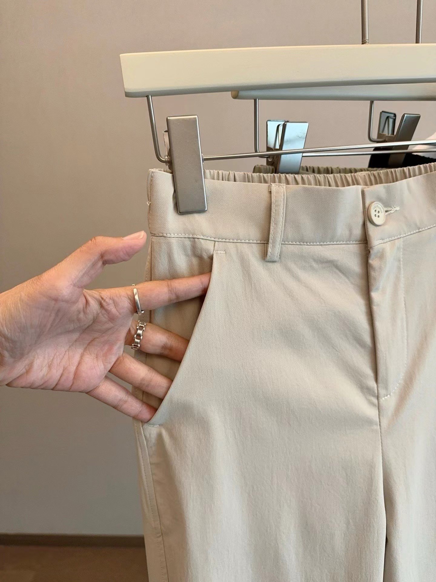 夏季薄款日韩系简约休闲裤 小个子女生也能轻松驾驭 是简单搭配白T都很有腔调,上身包容性很强,隐藏腿型,谁穿都很显瘦 松紧腰设计舒适随性 增加立体感 烟管裤裤型,既休闲又百搭 裤子做了成衣水洗,不会褪色不会缩水,面料非常亲肤。另外这个面料的抗皱性能非常非常好,不容易皱,好打理,透气性能也很好,超合适夏天穿