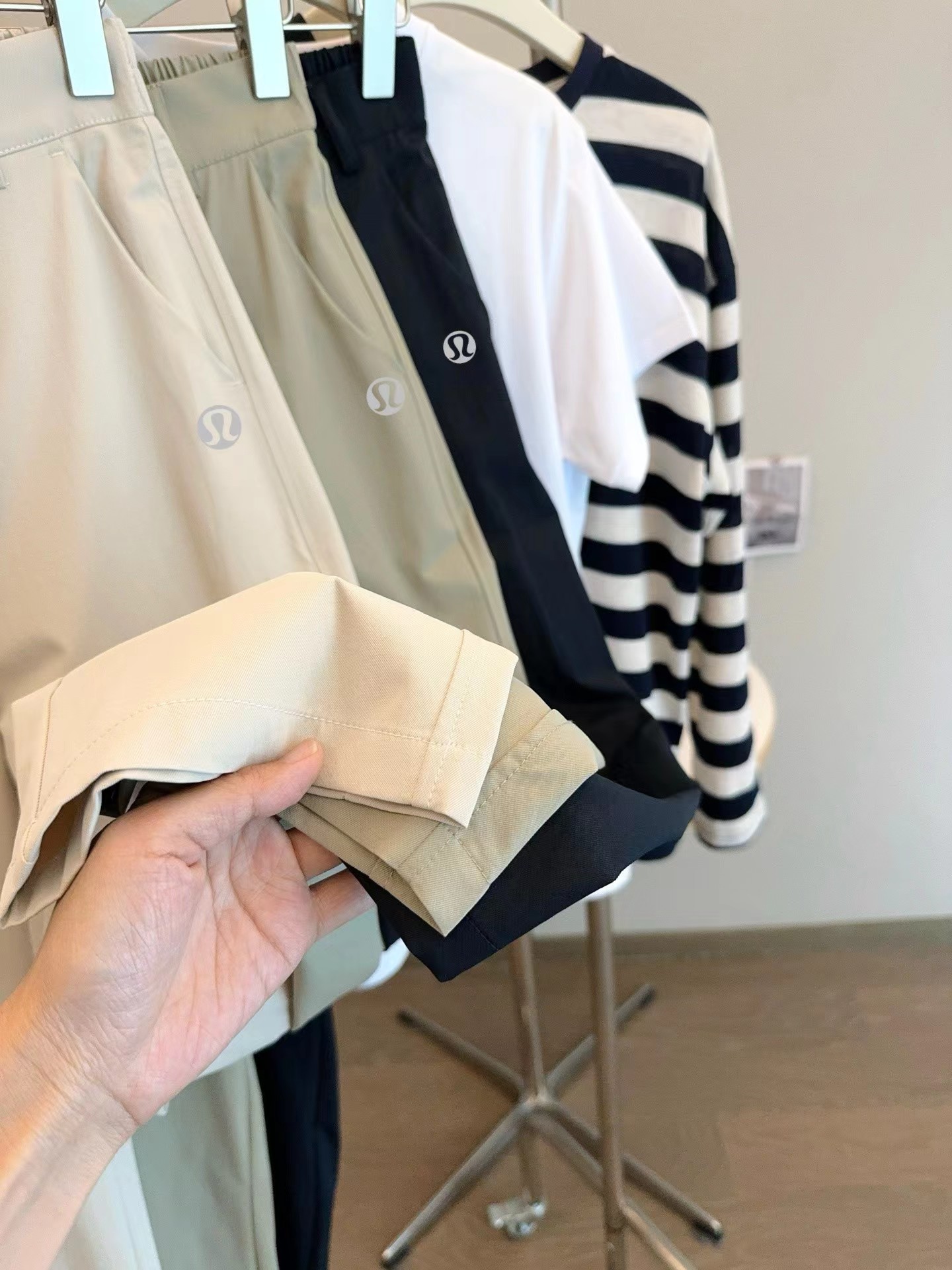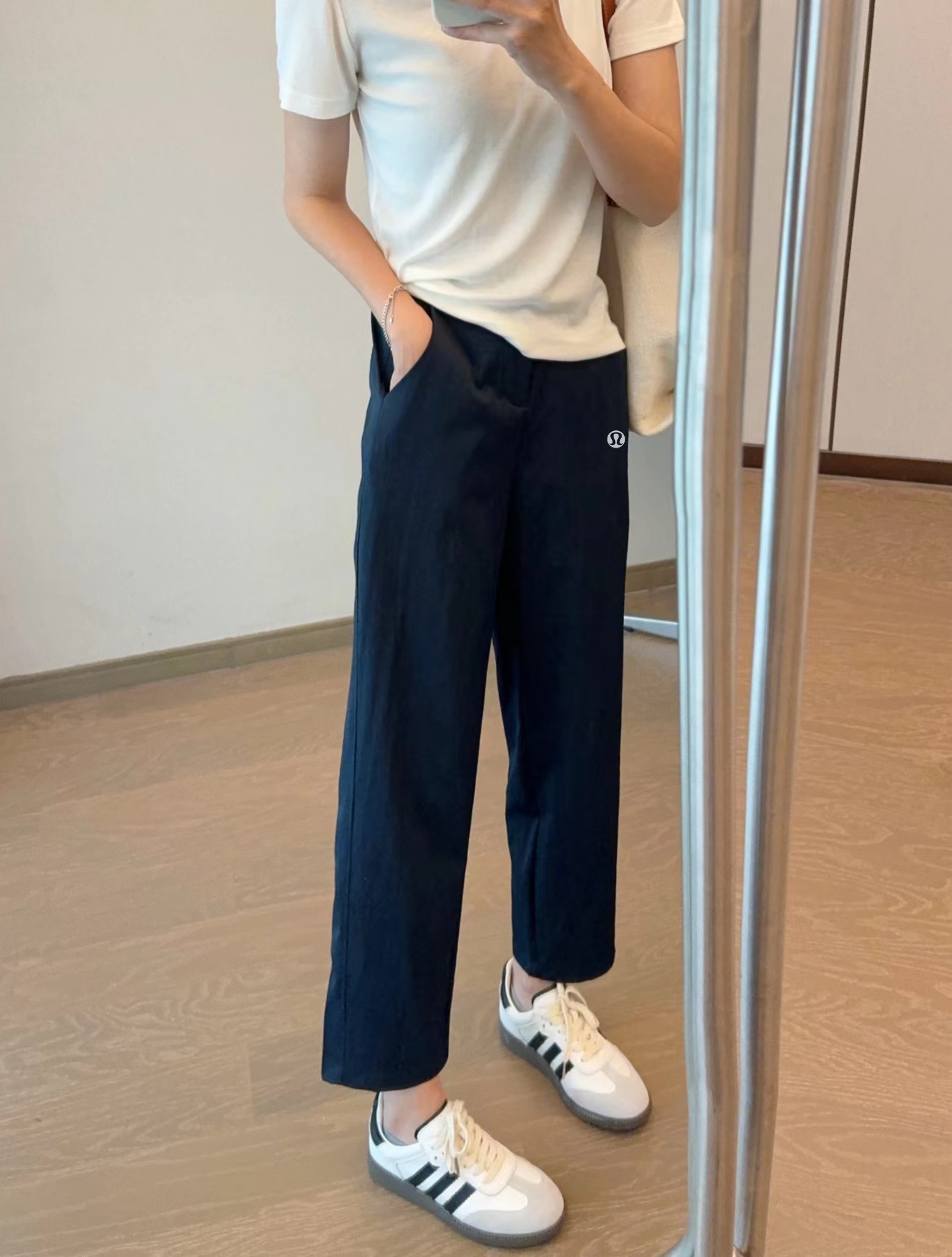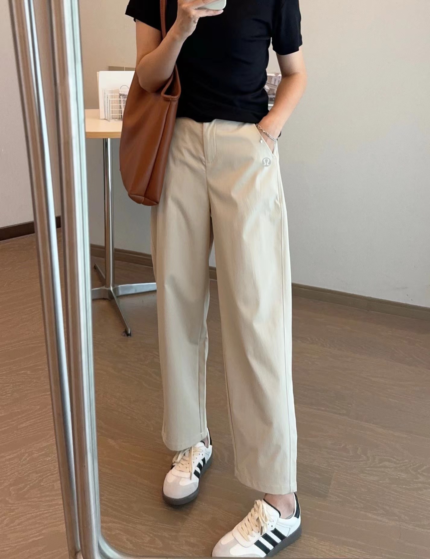 夏季薄款日韩系简约休闲裤 小个子女生也能轻松驾驭 是简单搭配白T都很有腔调,上身包容性很强,隐藏腿型,谁穿都很显瘦 松紧腰设计舒适随性 增加立体感 烟管裤裤型,既休闲又百搭 裤子做了成衣水洗,不会褪色不会缩水,面料非常亲肤。另外这个面料的抗皱性能非常非常好,不容易皱,好打理,透气性能也很好,超合适夏天穿