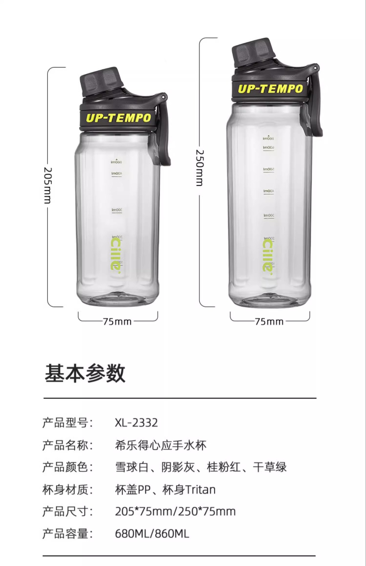 【喝出健康❗希乐运动水杯】860ML大容量,畅饮才够爽,Tritan材质安全无异味,PP材质防勒提手,男女学生户外便携水壶健身高颜值随手杯带提手塑料杯QQ