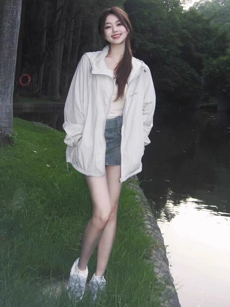 【夏日氛围感担当❗️轻氧防晒外套】超薄透气科技面料,轻如蝉翼,告别闷热黏腻,体感清爽一整天,宽松落肩 + 中长款剪裁,不挑身材,轻松藏肉显瘦,打造随性慵懒风,百搭宽松防紫外线薄款防晒服外套潮L