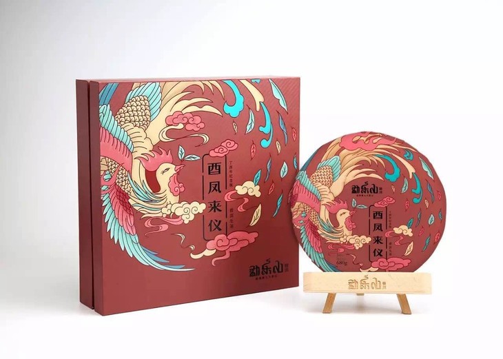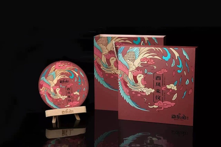 专业设计团队反复研讨,最后采用深红为底色,展翅的凤凰衔着茶叶,翱翔在祥云之中,端庄大气,吉祥寓意跃然而出。并用这一主题专门定制了主题礼盒+礼袋,从内到外定制包装,档次感十足,又包含吉祥和祝福,最适宜春节送礼。