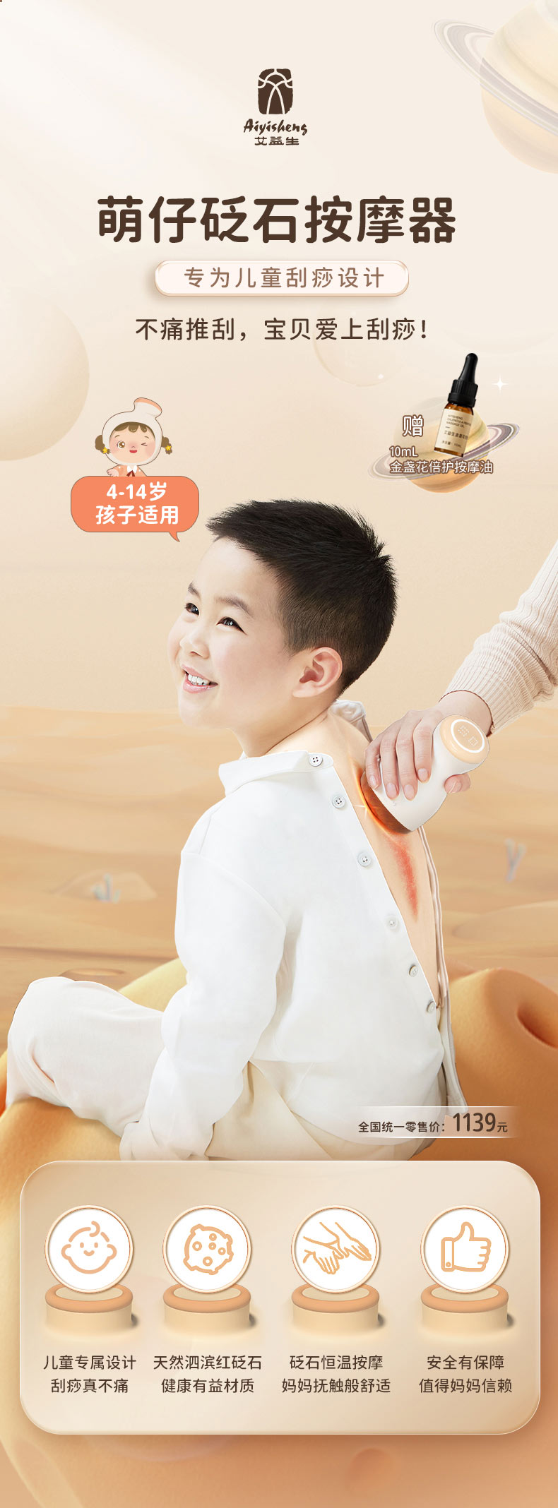 【萌仔砭石按摩器】儿童刮痧、按摩专用