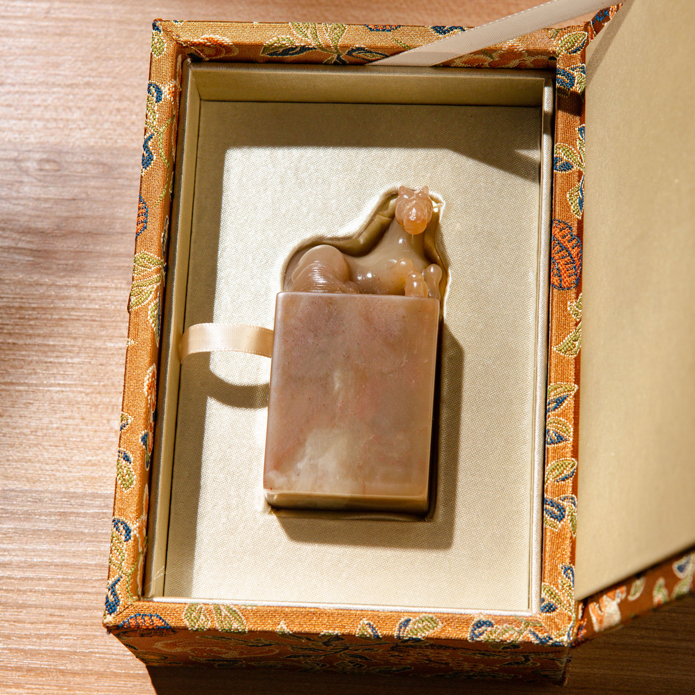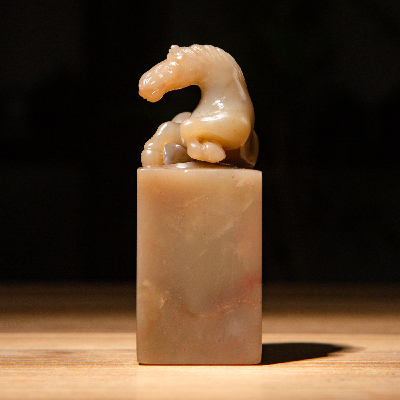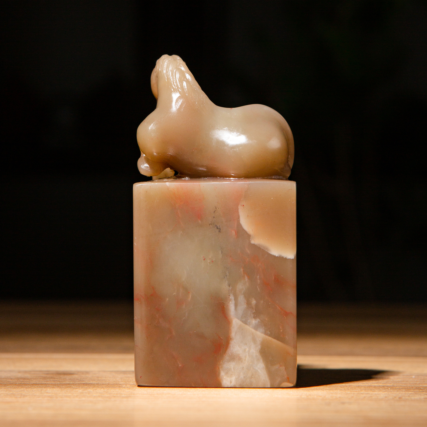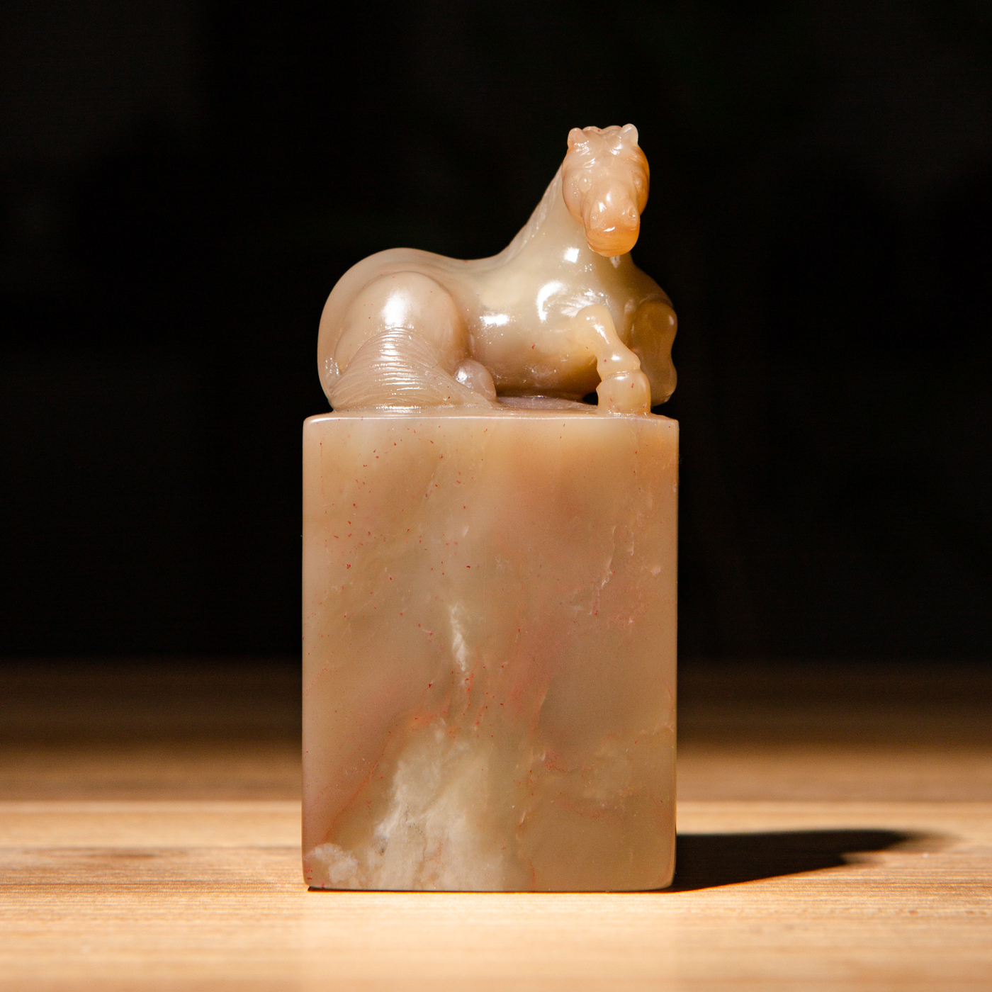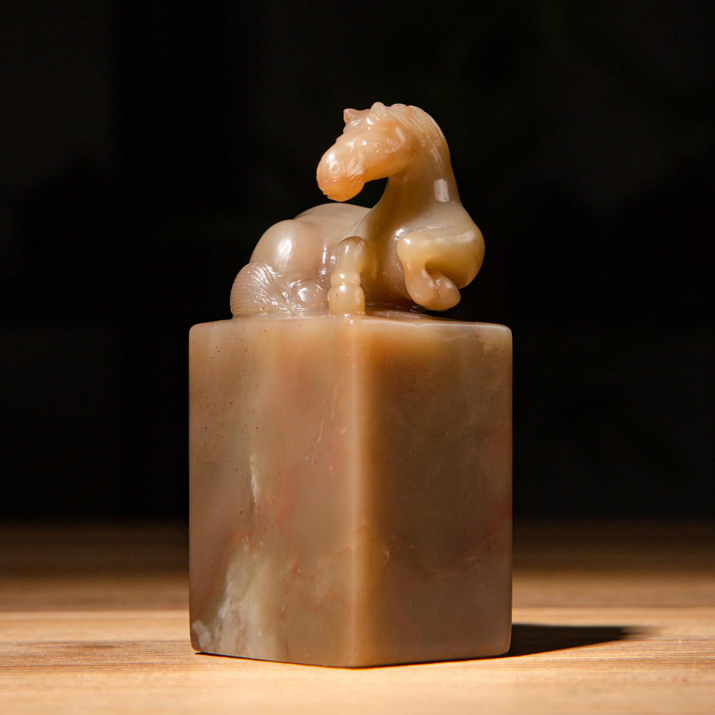 寿山石老料手雕“古骏”方章,采用存放几十年的老料,纯手工精雕而成。其雕工精美,质地温润,石性稳定。
