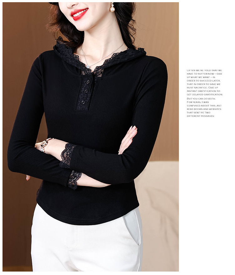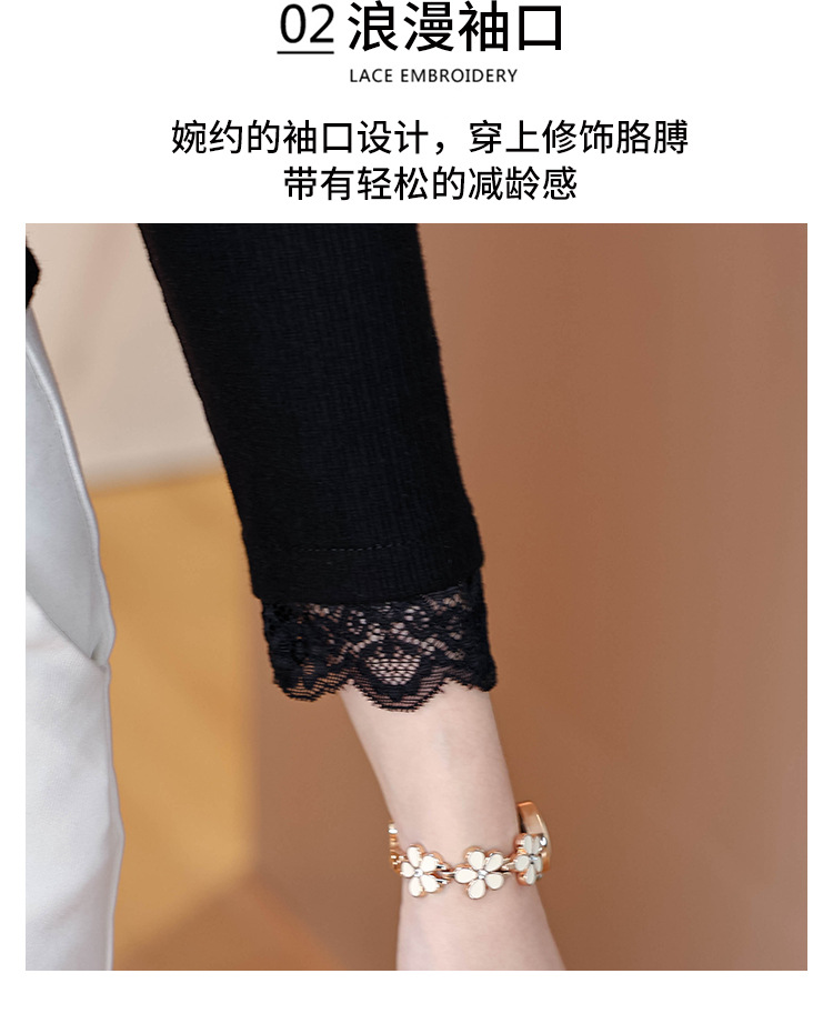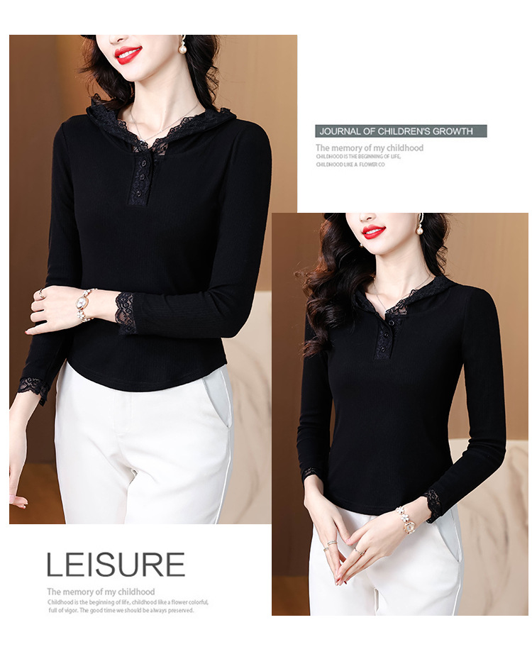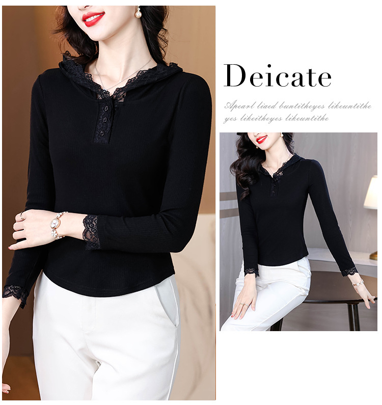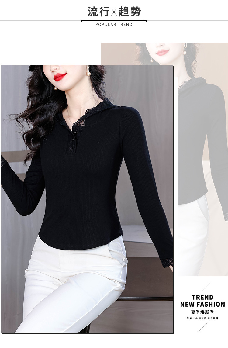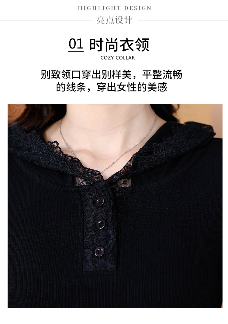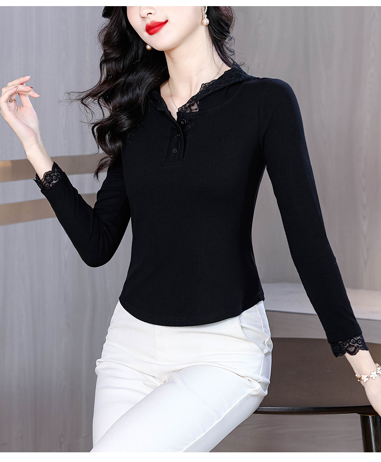 KQL 355H8166蕾丝拼接连帽长袖T恤洋气修身显瘦上衣