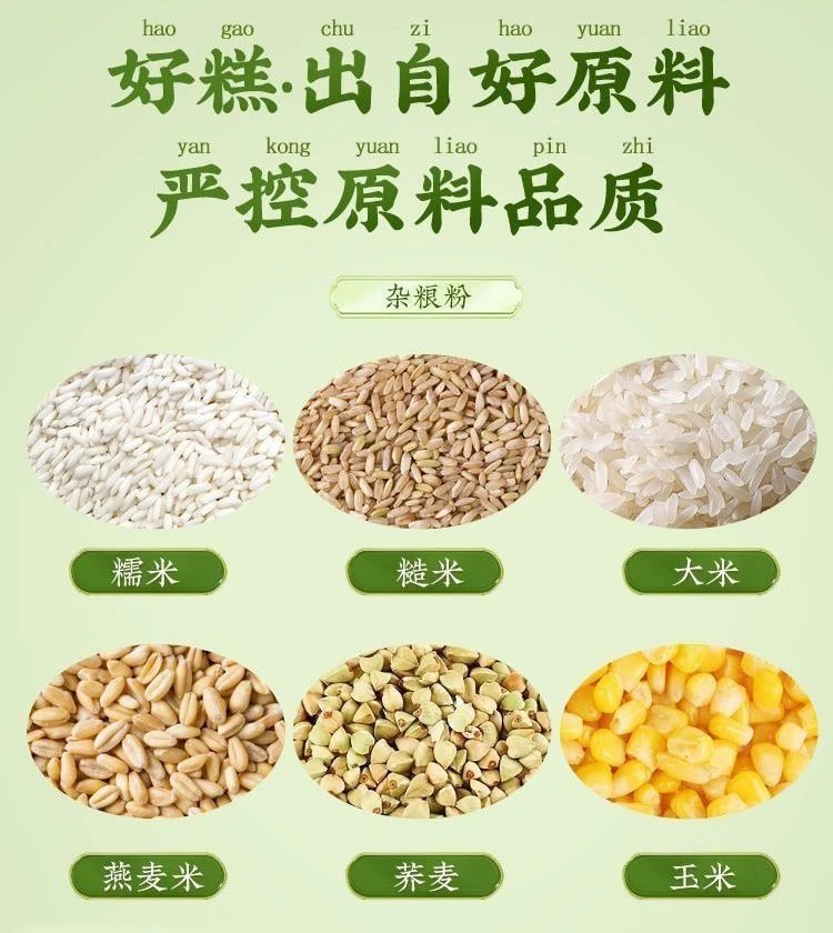 精选6种杂粮 吃着更放心: 大米+糯米+糙米+燕麦米+荞麦+玉米 不额外色素香精、防腐剂0蔗糖 全家都可以放心吃~口感绵密扎实有嚼劲 美味饱腹