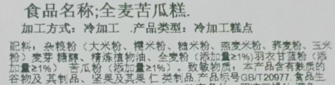【品牌名称】:奕夫 【产品名称】:全麦苦瓜糕 【规格】:250g/袋 【产地、发货地】:河南驻马店西平县 【发货快递】:圆通 申通 【加运费地区】:无 【不发地区】:港澳台新疆西藏 【发货时效】:48 【生产日期】:近期 【保质期】:90天 【售后规则】 1.产品发出不支持无理由拒收拦截撤单改地址 2.如出现异常情况,请带面单+产品拍照+产品包装照片与我们联系,我们会第一时间处理,如产品有质量问题可在收货24小时之内,联系客服进行售后或者补发